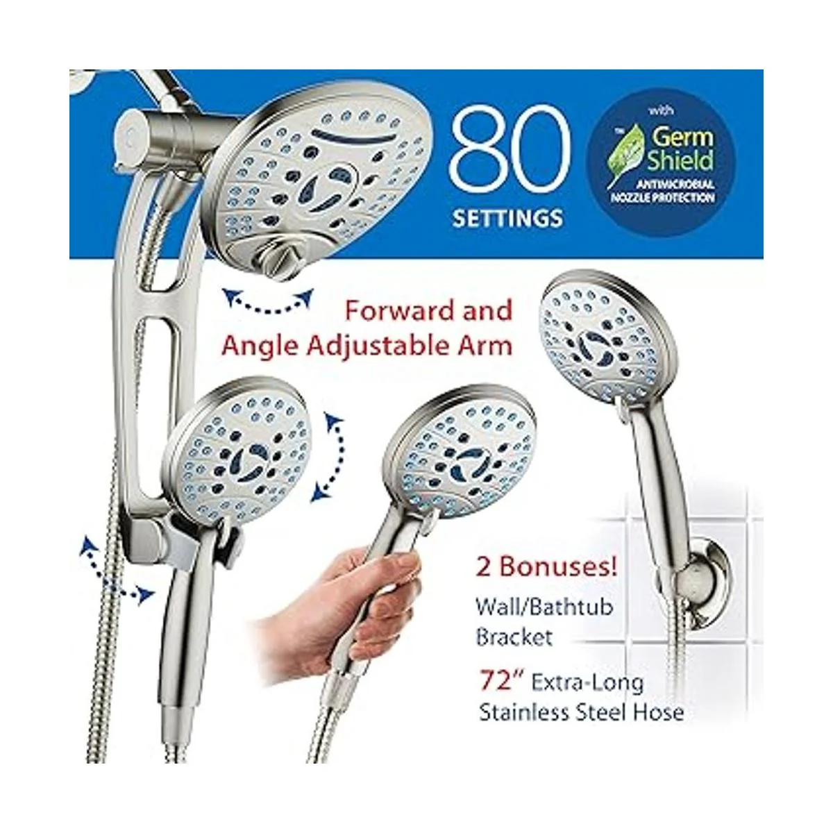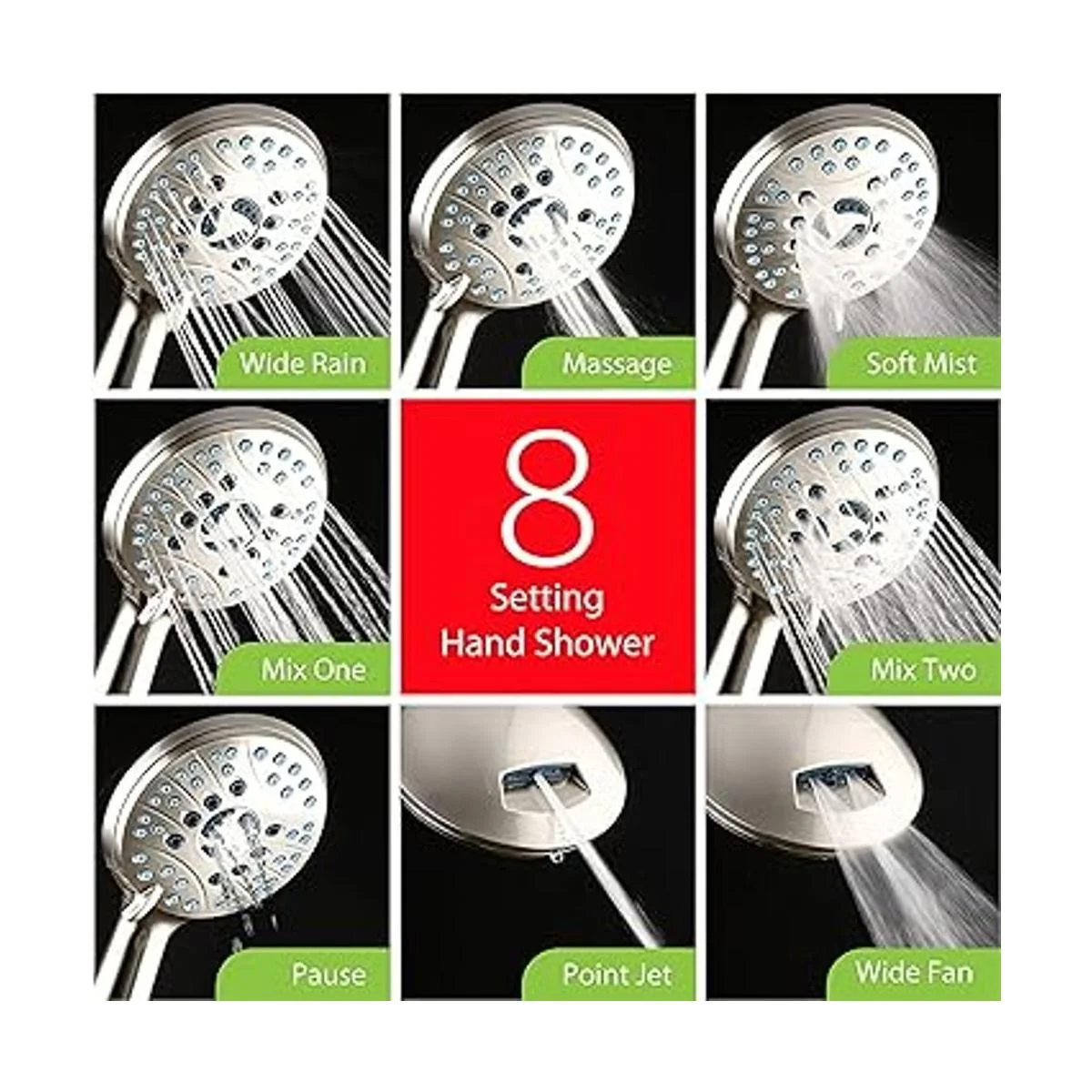 Más presión de agua, ducha más limpia: utiliza una ducha de mano avanzada de 8 configuraciones de 5 zonas y un cabezal de ducha gigante de lluvia de 7 pulgadas por separado o juntos para la mejor experiencia de spa. Ambos cabezales cuentan con boquillas antiobstrucciones que evitan la acumulación de suciedad en el interior. Por lo tanto, mientras que otros cabezales de ducha se obstruyen y pierden la presión del agua con el tiempo, las boquillas AquaCare permanecen limpias y sin obstrucciones durante años de rendimiento impecable.