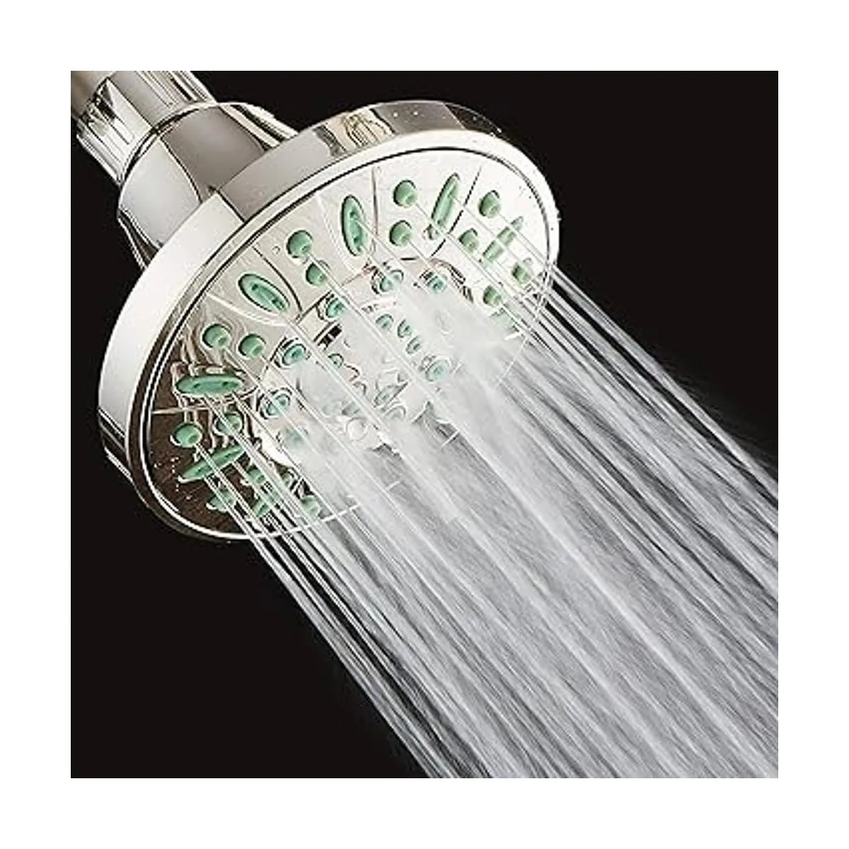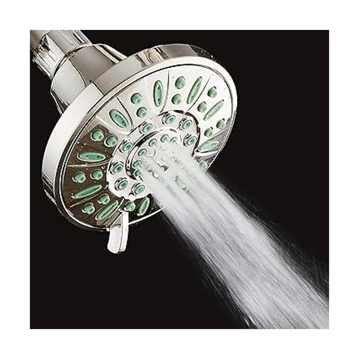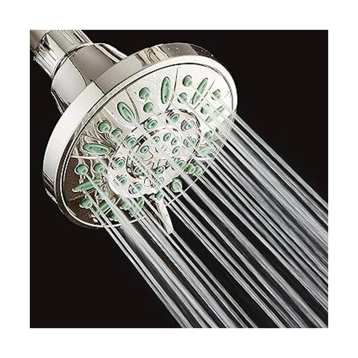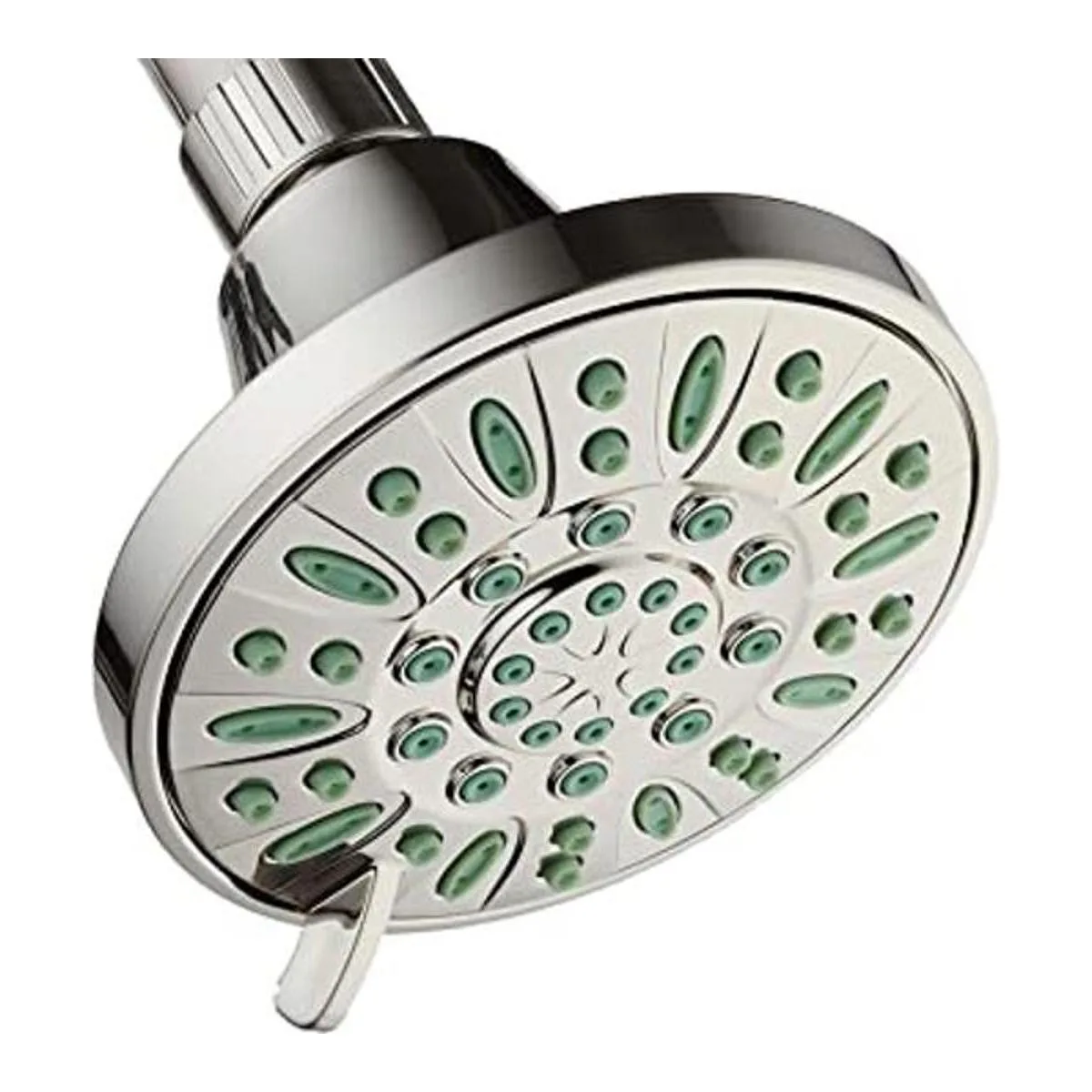 AquaDance Cabezal de ducha antimicrobianoantiobstrucción de alta presión de 6 ajustes, boquilla Microban protección contra el crecimiento de moho, moho y bacterias para una ducha más fuerte. Acabado de níquel cepilladochorros verdes corales