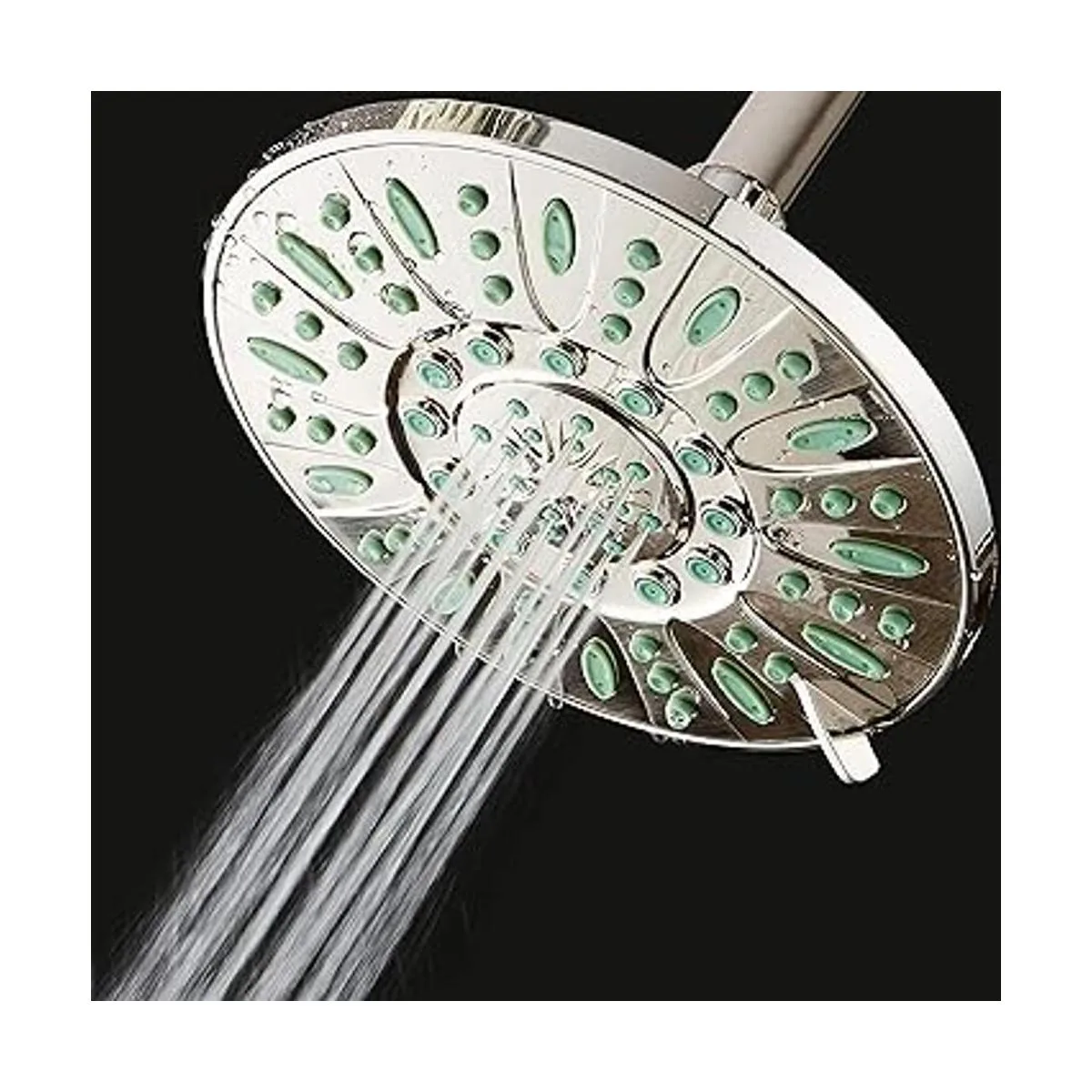 6 opciones de ajuste de pulverización: personaliza tu experiencia de ducha para adaptarse a tu estado de ánimo o estado de ser. Elige lluvia potente, masaje pulsante, niebla suave, lluvia/masaje, lluvia y niebla y modo de pausa de encendido/apagado que ahorra agua. Una cara extragrande de 7 pulgadas proporciona una increíble cobertura de agua y es ajustable en ángulo, lo que te permite establecer la posición perfecta para disfrutar de tu larga ducha caliente.