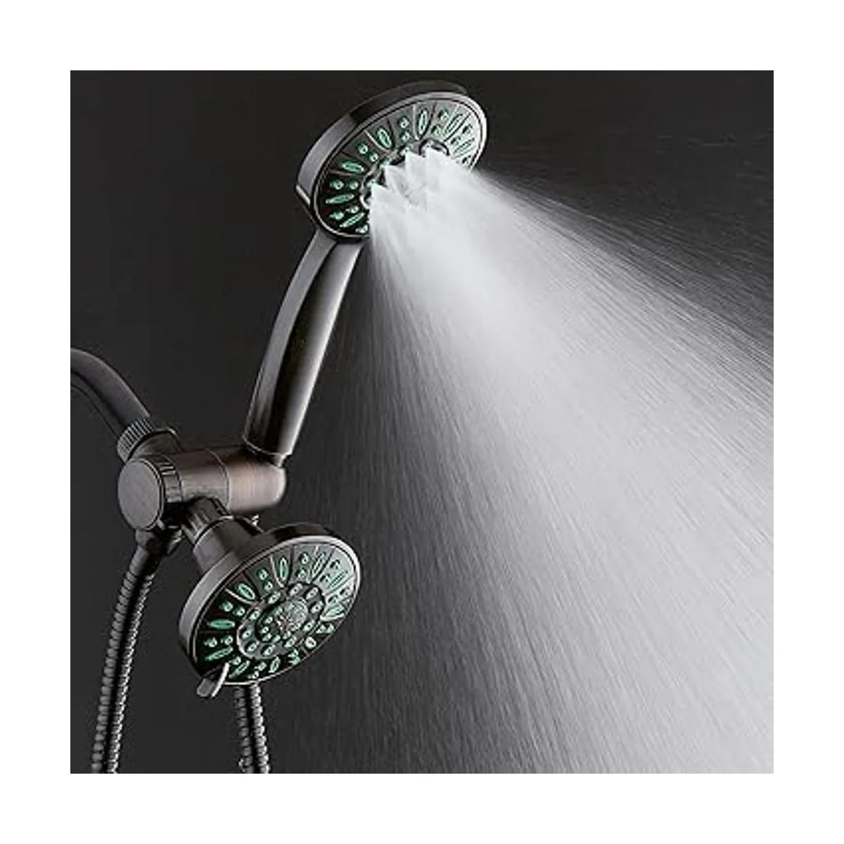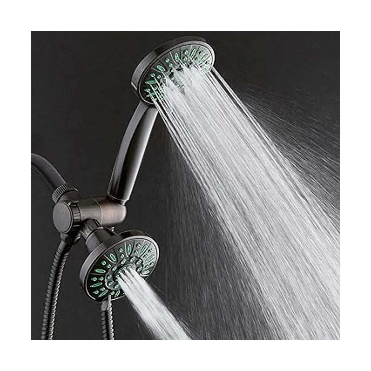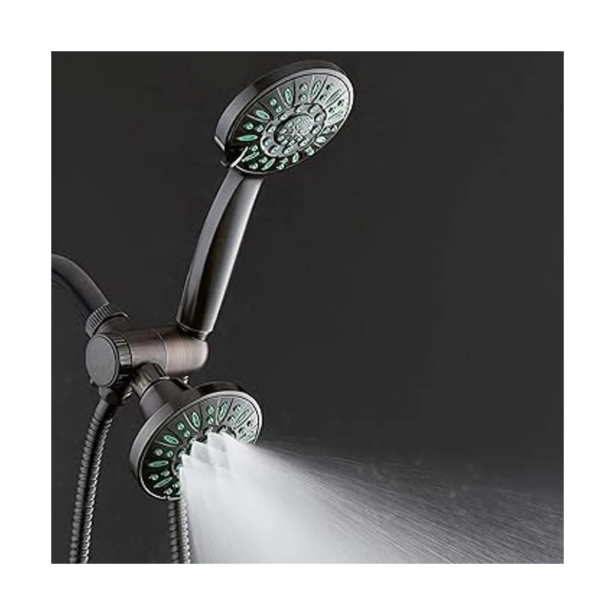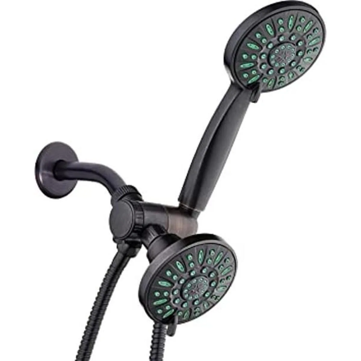 AquaDance Combo de ducha antimicrobianoantiobstrucción de alta presión de 30 ajustes, protección de boquilla Microban contra el crecimiento de moho y bacterias para una ducha más fuerte. Acabado de bronce aceitadochorros verdes coral