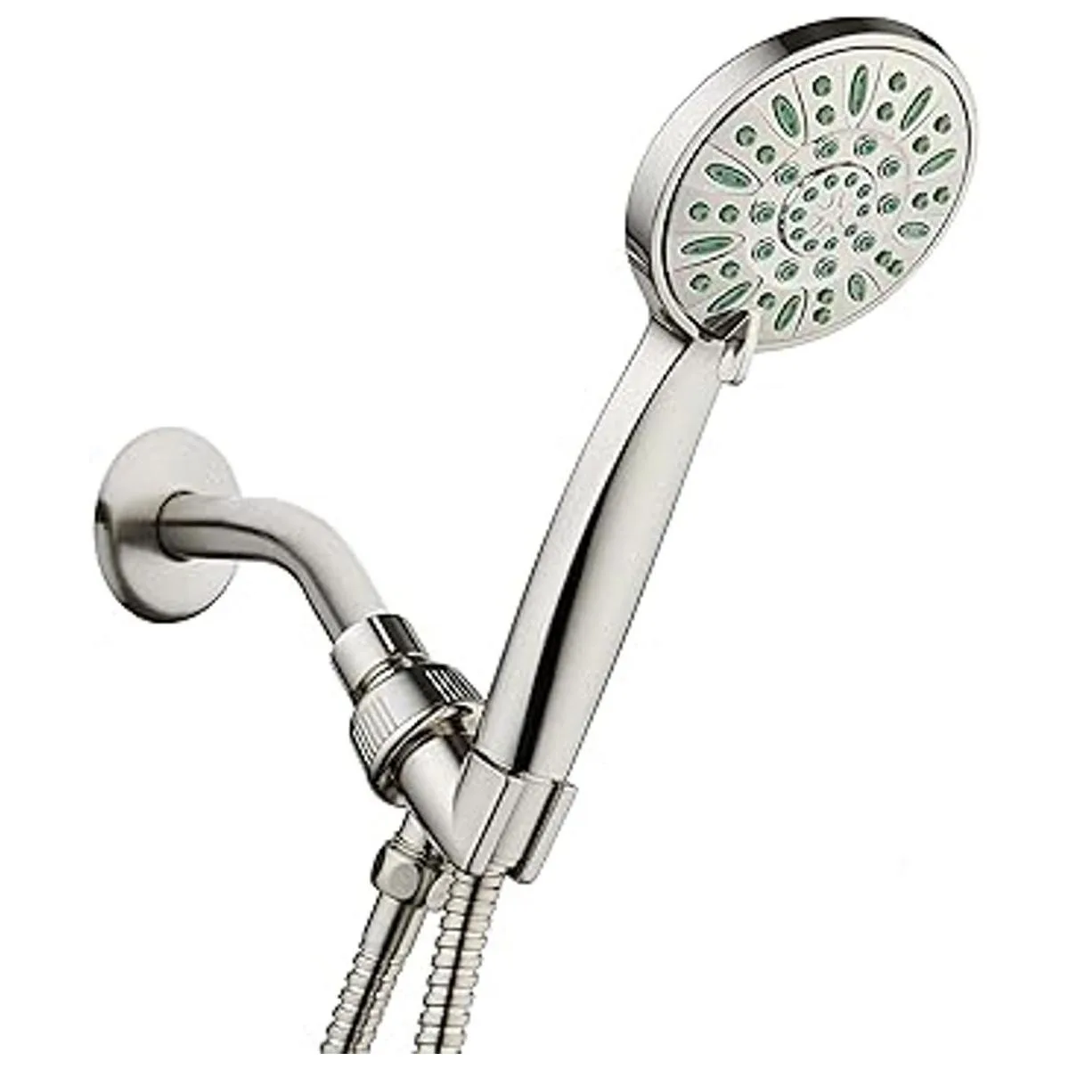 AquaDance Ducha de mano antimicrobianaantiobstrucción de alta presión de 6 ajustes, protección de boquilla microbanana contra el crecimiento de moho, moho y bacterias para una ducha más fuerte. Acabado de níquel cepillado