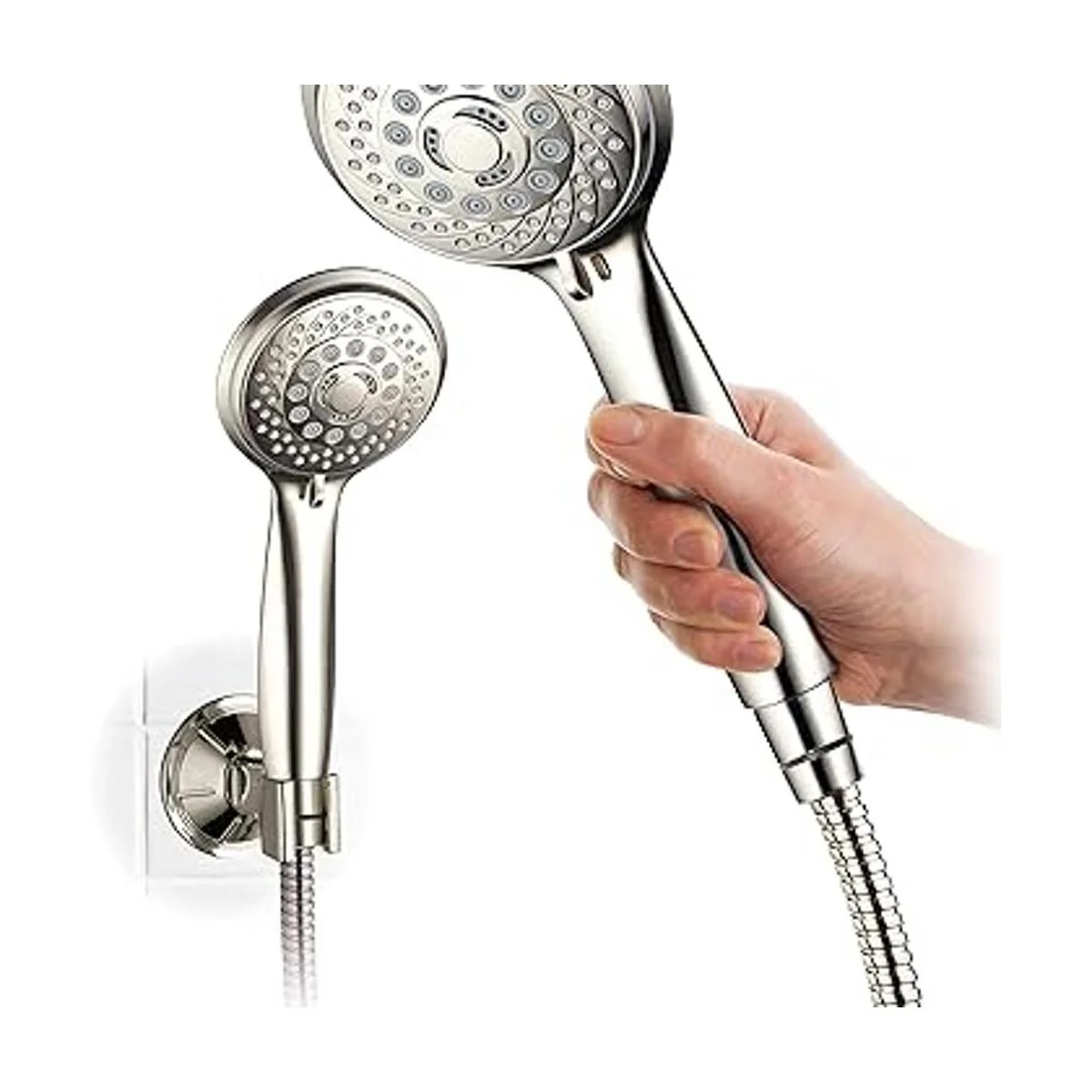 AquaSpa Cabezal de ducha de alta presión 6 en 1, cabezal de ducha de mano con dos soportes de pared para arriba y bajo alcance, desviador de agua de 3 vías y manguera de acero inoxidableacabado de níquel cepilladoby HotelSpa