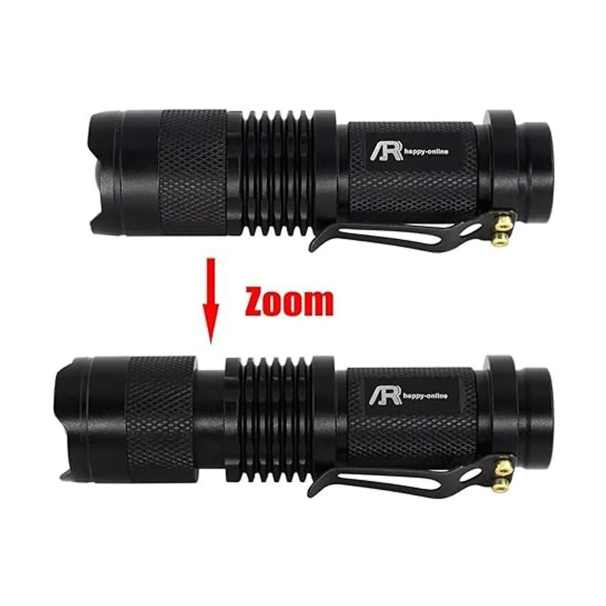 AR happy online paquete de 3 mini linternas led tácticas de mano de 3 modos, de 7 W y de 350 lm, con foco ajustable y con zoom.