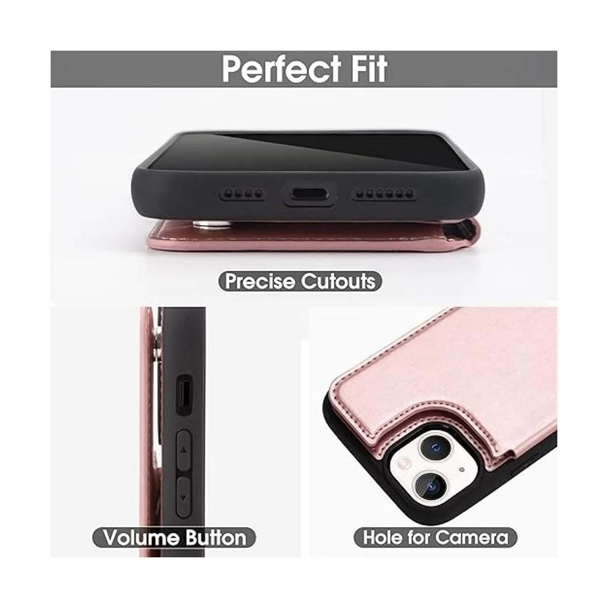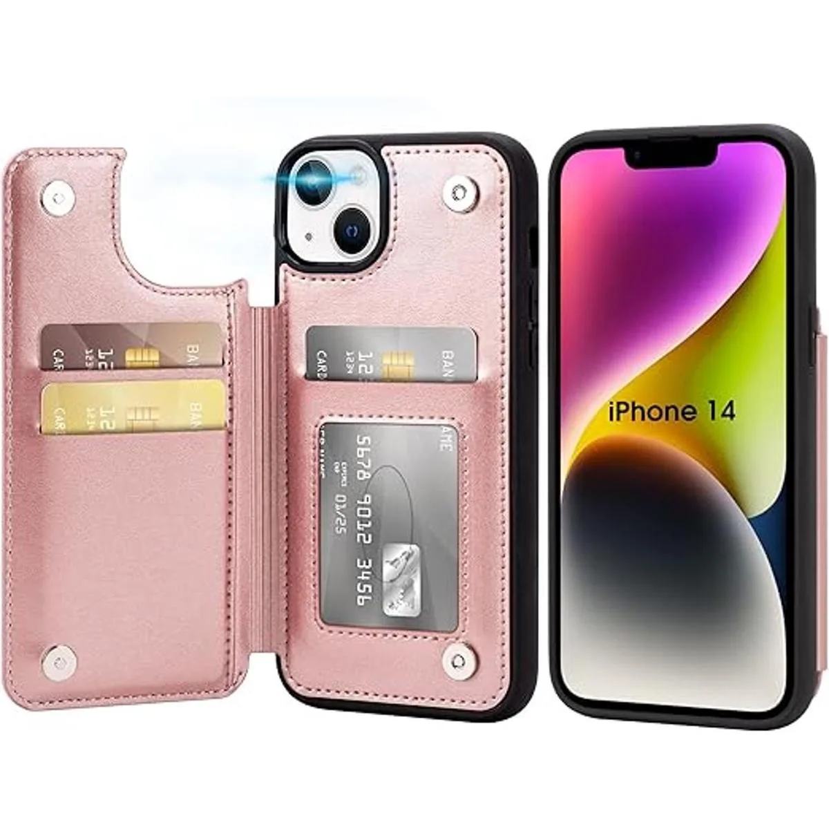 Arae Funda para iPhone 14 – Funda tipo cartera con tarjetero de piel sintética trasera abatible para iPhone 14 de 6.1 pulgadas – Rosegold