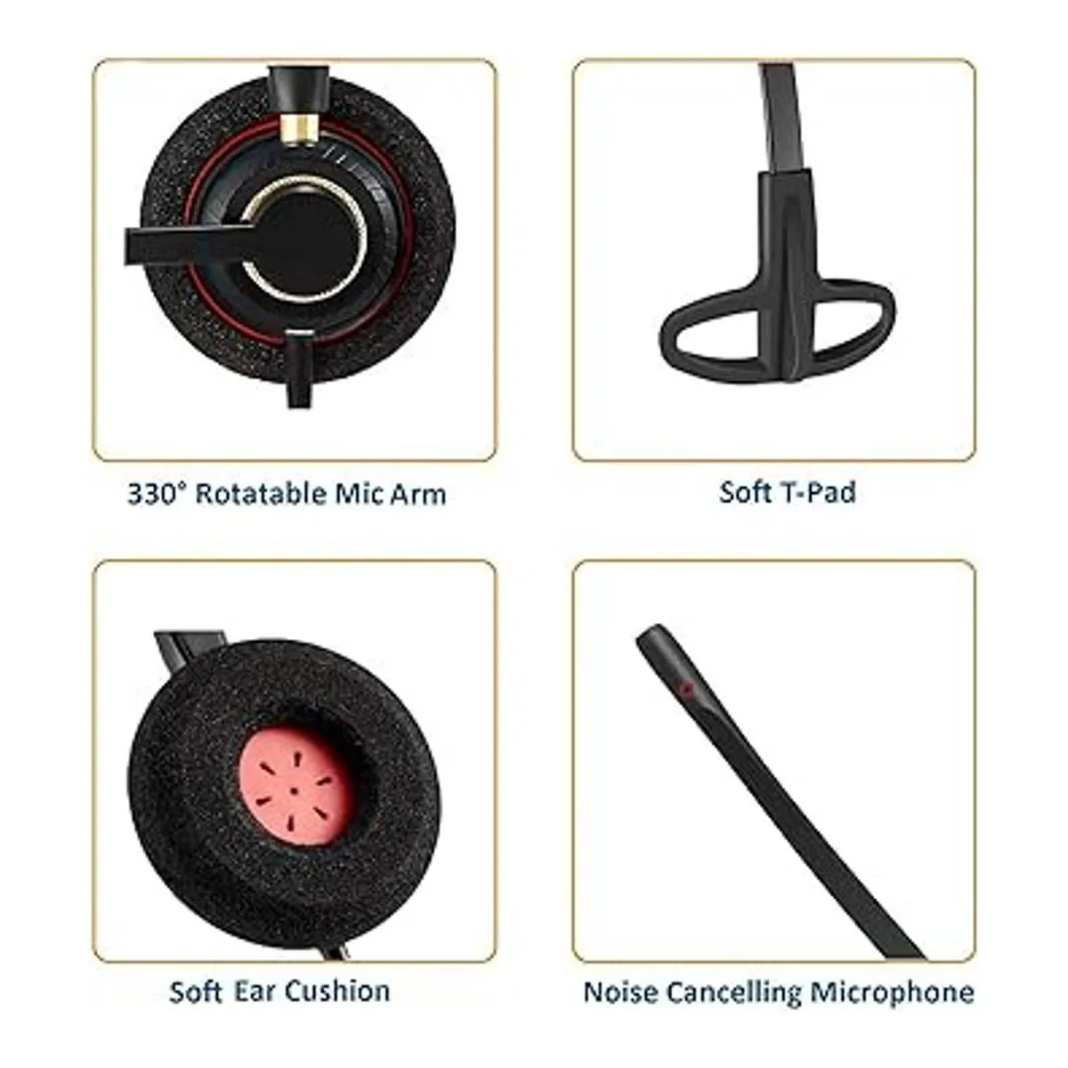 Superduradero Diseño de precisión, plásticos de calidad, construcción de diadema unibody y micrófono de calidad superior hace que estos auriculares de centro de llamadas sean más resistentes y duraderos. Compite con Plantronics o Jabra auriculares de teléfono resistentes para centro de llamadas, telemarketing y oficina.
