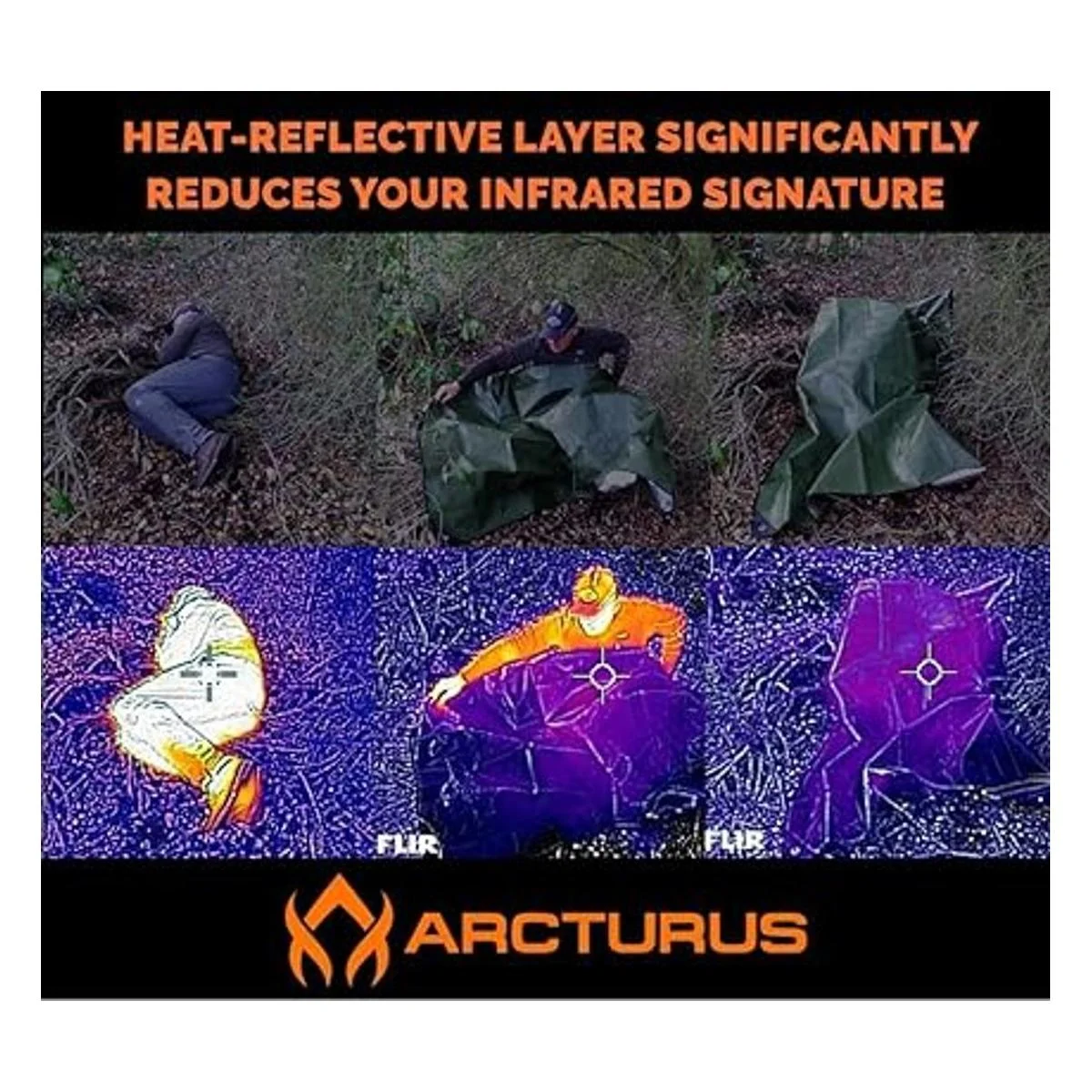 Arcturus Manta de supervivencia resistente Lona reflectante térmica aislada 60 x 82 pulgadas Manta de emergencia reutilizable para todo tipo de clima, para coche o campamento. Bloquea la barrera térmica infrarroja, firma