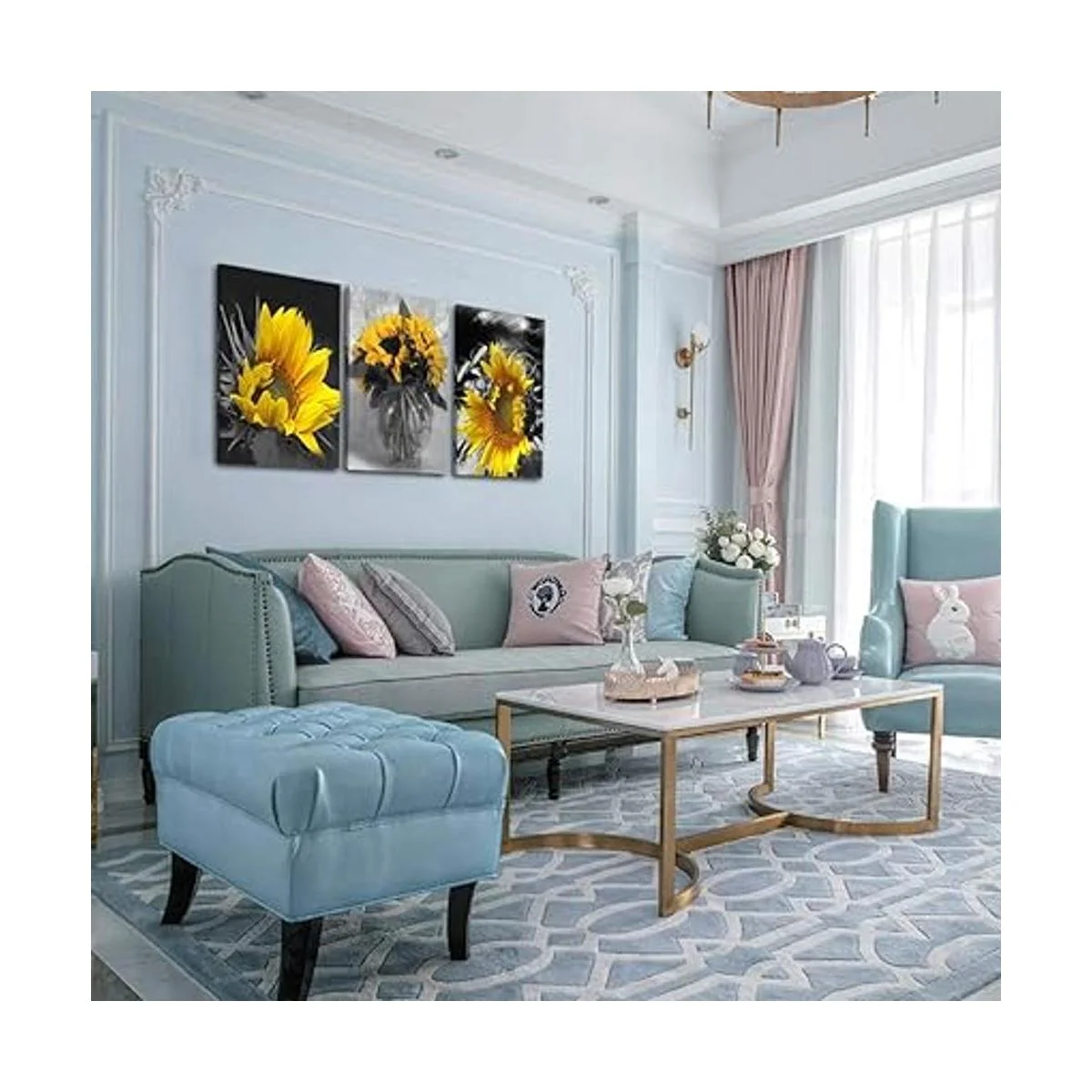 Lugares adecuados: arte mural de girasoles para sala de estar, dormitorio, cocina, baño, spa, hogar, oficina, etc. Debido a las diferentes marcas de ajustes de monitor, los colores de impresión pueden aparecer ligeramente diferentes del color de la imagen.