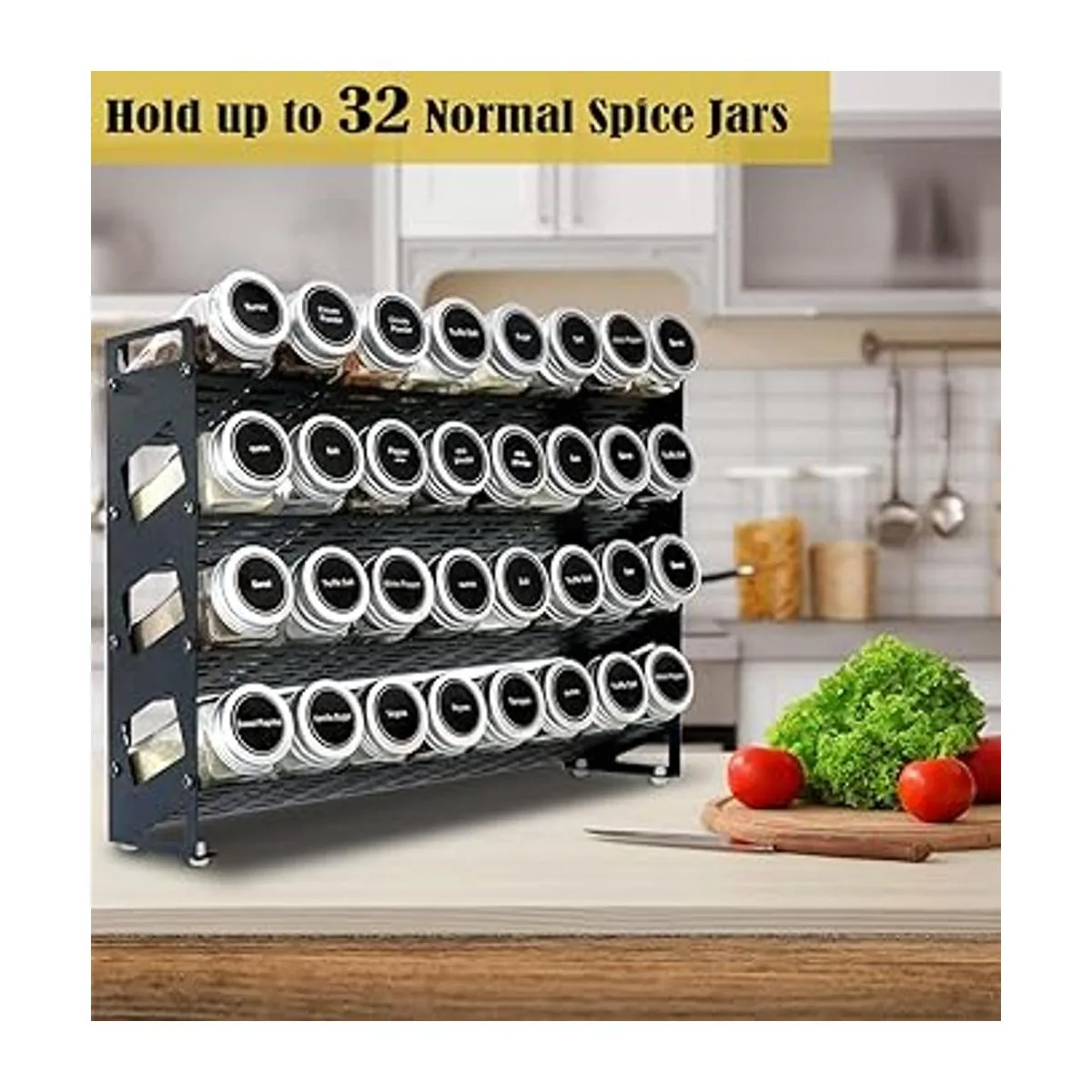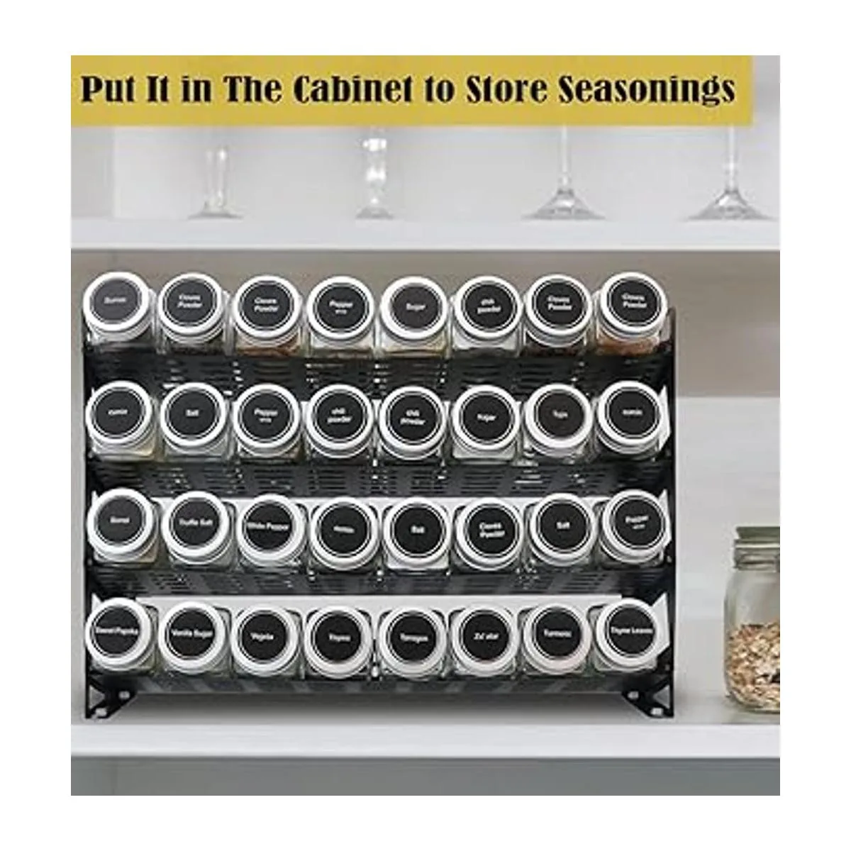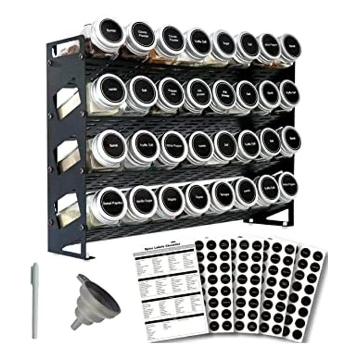 Ardier Organizador de especias de 4 niveles con 32 tarros cuadrados de especias y 160 etiquetas de especias para gabinete de cocina, despensa o montaje en pared, negro mate