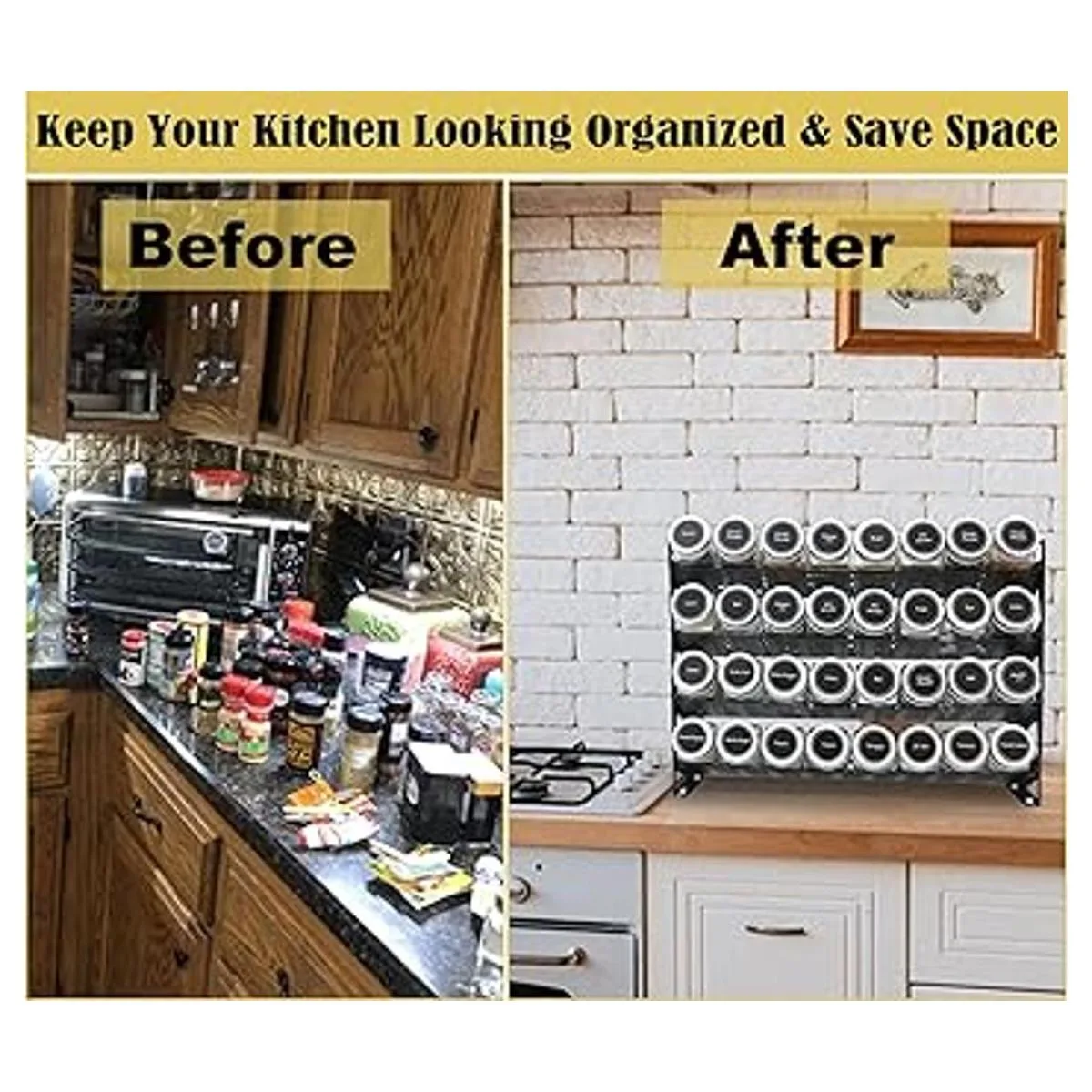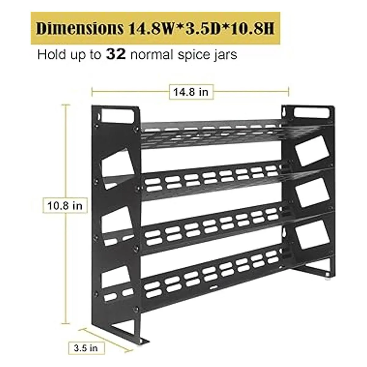 Diseño de gran capacidad de 4 niveles: el organizador de estante de condimentos mide 144/5 pulgadas de ancho x 31/2 pulgadas de profundidad x 103/4 de alto y tiene capacidad para hasta 32 botellas de especias de 4 onzas. El juego de organización de especias de 4 niveles puede almacenar fácilmente cuádruples, creando más espacio en armarios y despensas desordenados.