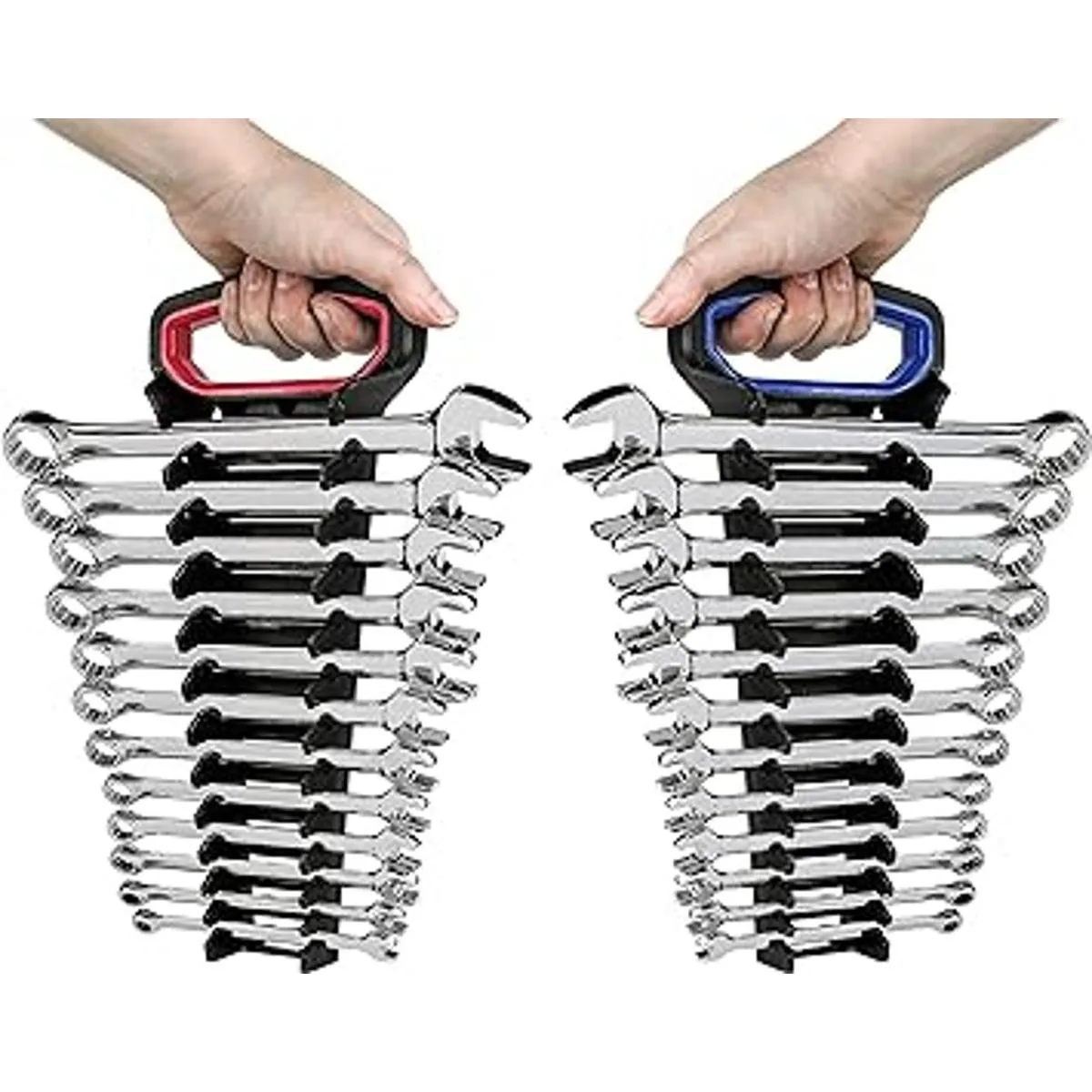 Especificaciones del artículo: Este organizador de llaves magnéticas puede contener hasta 12 llaves en los siguientes rangos de tamaños: llaves SAE de hasta 1 1/16 pulgadas y llaves métricas de hasta 0.945 in. Este estante se fija firmemente a cualquier superficie de metal ferroso y también cuenta con agujeros para un fácil montaje en pared si se desea un accesorio más permanente.