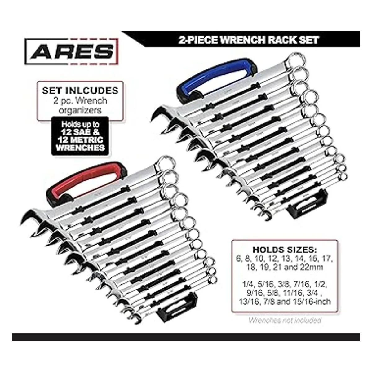 ARES 62006Organizador de llaves magnéticas de metal de 12 piezas, estante de metal resistente que almacena hasta 12 llaves SAE y métricas y mantiene tu garaje organizado