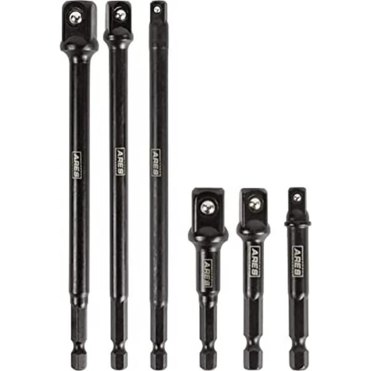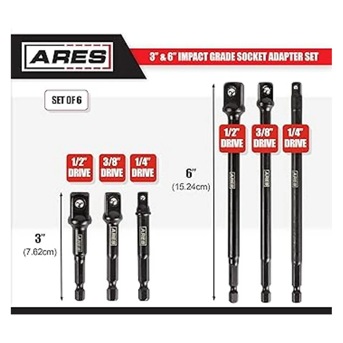 ARES 70382 Juego de adaptadores de enchufe de grado de impacto de 6 piezas de 3 pulgadas y 6 pulgadas, convierte el destornillador de impacto en un destornillador de enchufe de alta velocidad, tamaños de unidad de 14 pulgadas, 38 pulgadas y 12 pulgadas