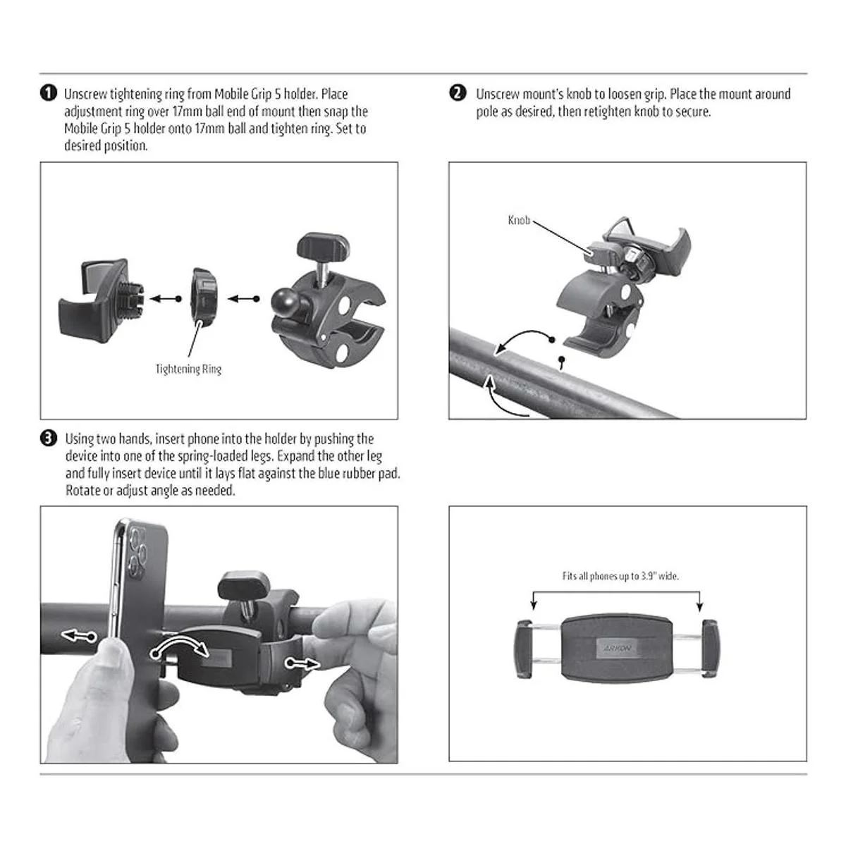 Para teléfonos de hasta 3.9 in de ancho, incluyendo iPhone.