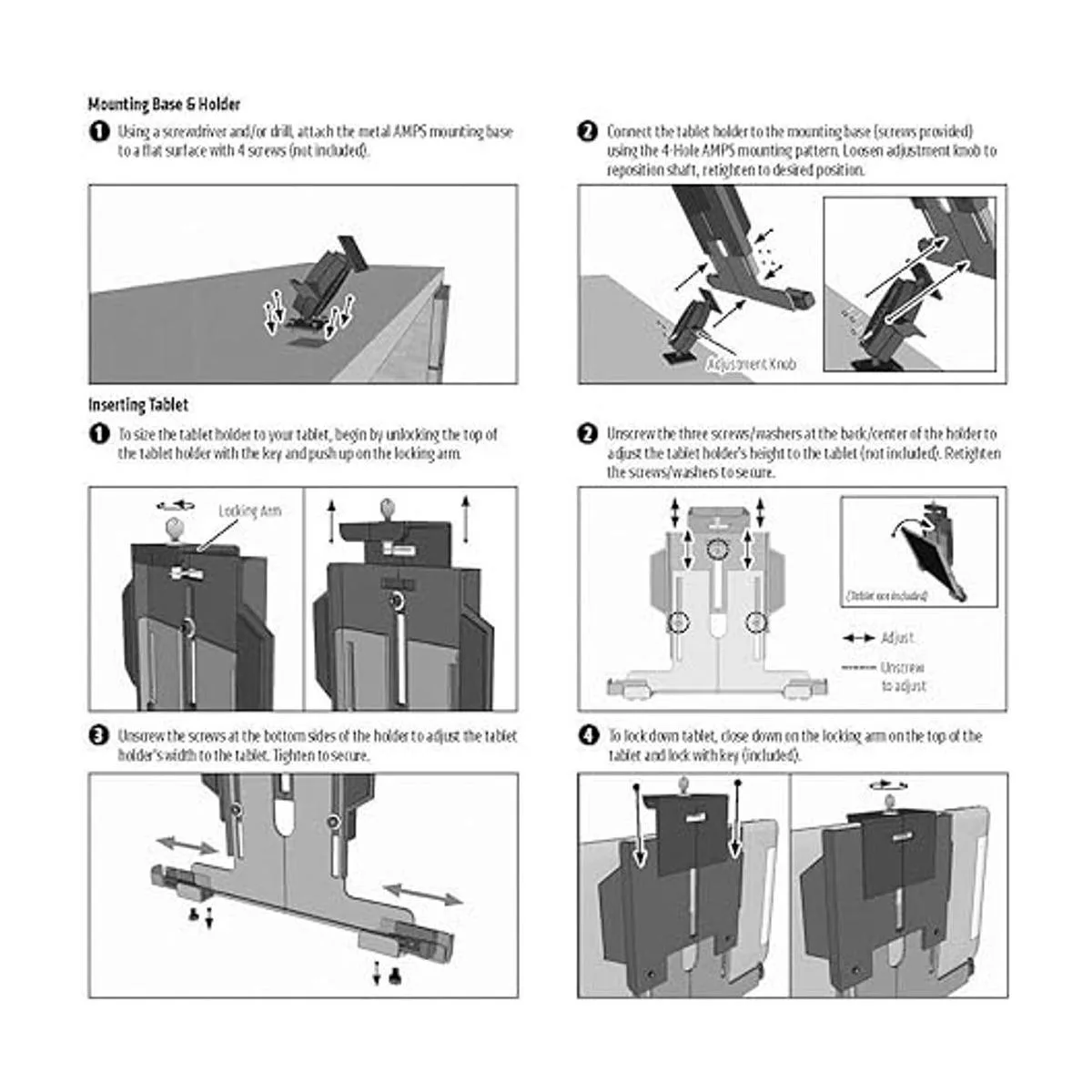 Arkon Soporte de aluminio para tablet con bloqueo de llave para ELog para Galaxy Tab A iPad modelos al por menor, color negro