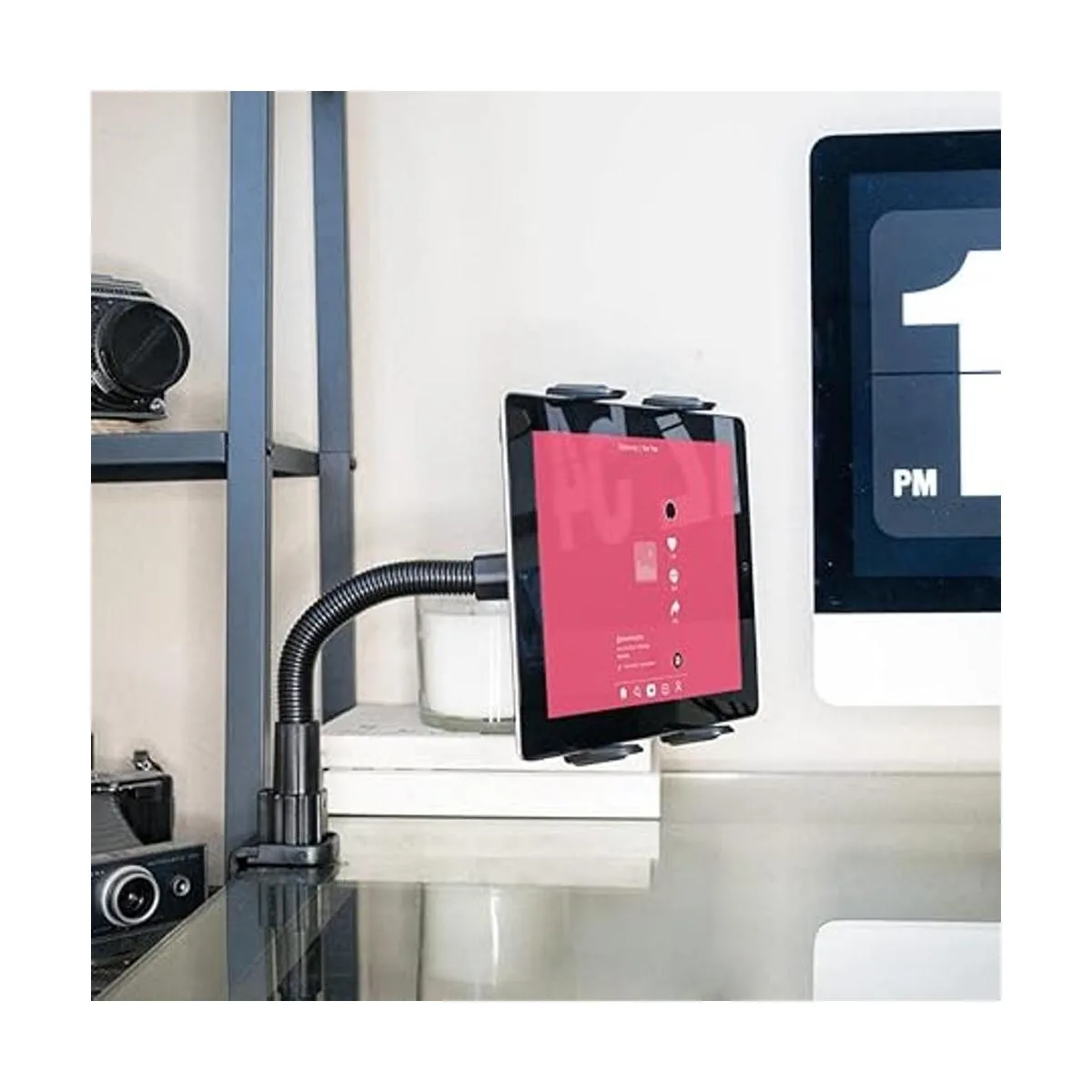 Fiabilidad resistente: este soporte duradero para tablet utiliza un soporte de abrazadera en C de acero, lo que te permite instalar de forma segura el soporte de tableta de cuello de cisne en cualquier superficie de hasta 2.25 pulgadas de grosor. Colócalo en un escritorio, carrito, mesa de trabajo, banco, guardabarros u otras superficies similares a la mesa; es ideal para una oficina, espacio de trabajo o gimnasio en casa donde se requiere un fácil acceso a una tableta, pero donde el espacio de la superficie es de primera calidad.