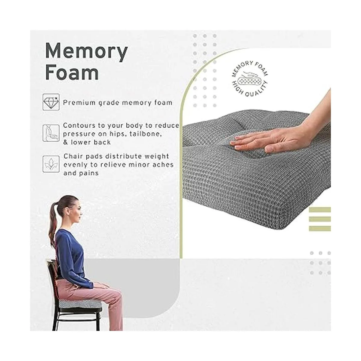 Arlee Tyler Cojín de asiento para silla, espuma viscoelástica, base antideslizante, tela duradera, comodidad y suavidad superiores, lavable, 16 x 16 pulgadas gris, juego de 2