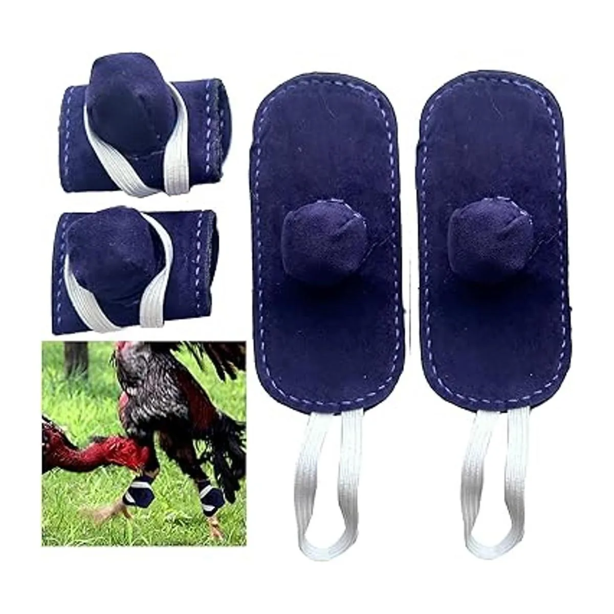 Buenos suministros para el cuidado de las aves de corral, para la prevención de lesiones por ensayos de pollo, material de luchador de pollo hecho de piel sintética duradera, se puede utilizar durante mucho tiempo, cubierto con esponja gruesa y ajustada con un agujero para poner el espolón de pollo puede evitar que el espolón se rompa