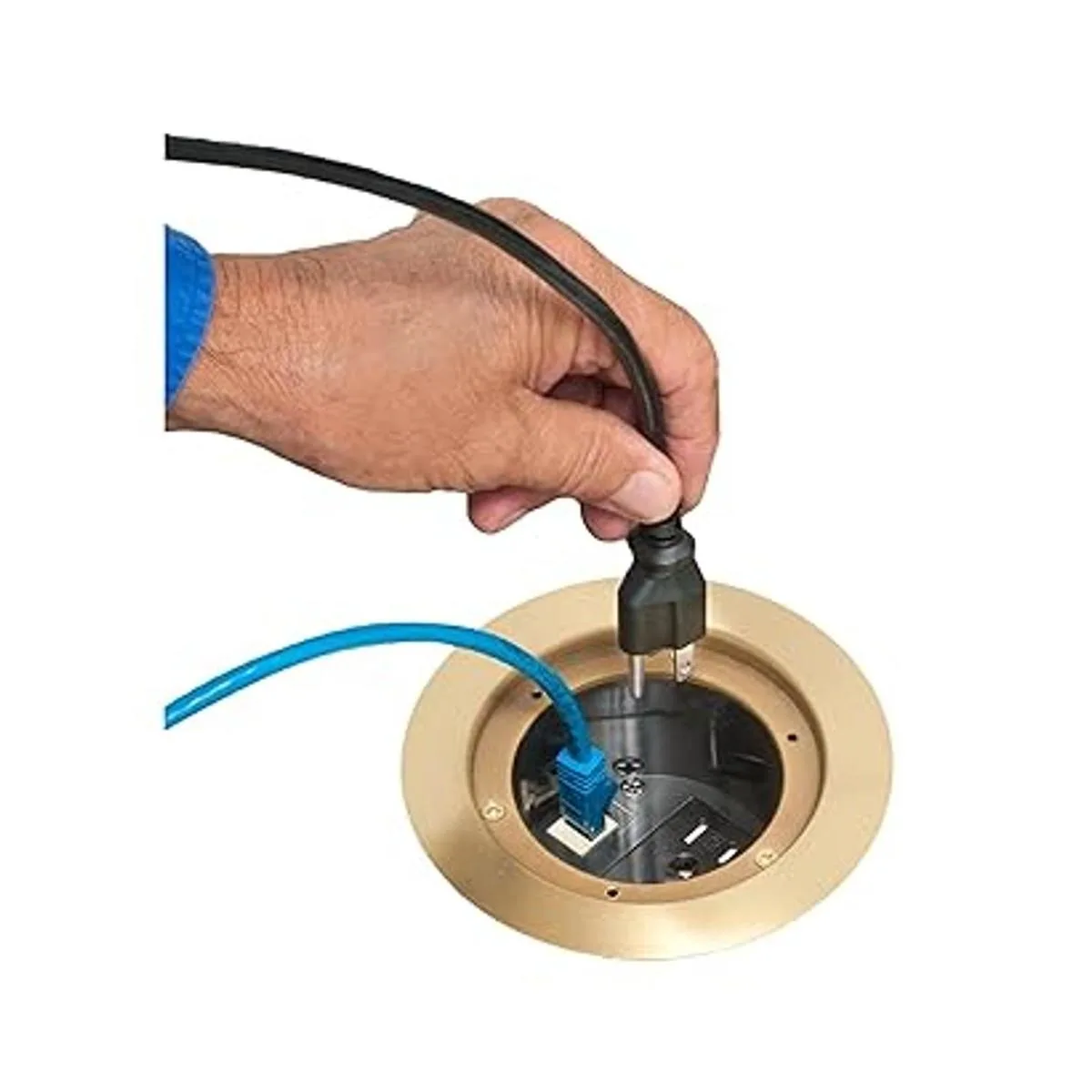 Arlington FLBC4580 Caja redonda de energía empotrada y datos para cajas de piso de hormigón existentes o nuevas se adapta a la mayoría de cajas redondas de PVC de 4.5 pulgadas de diámetro interior latón