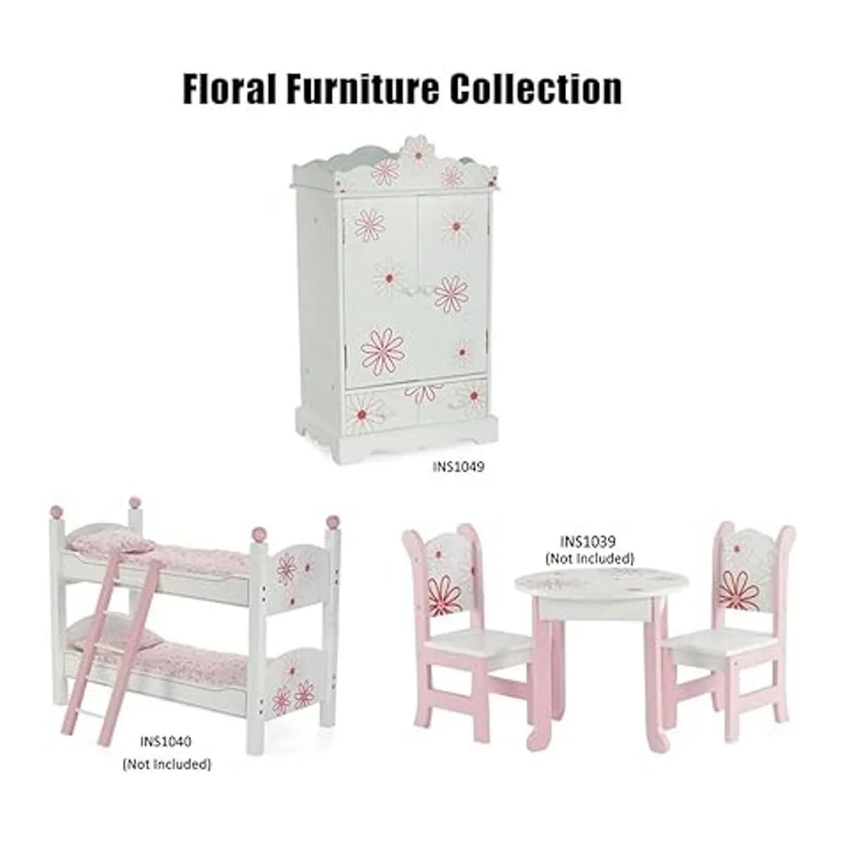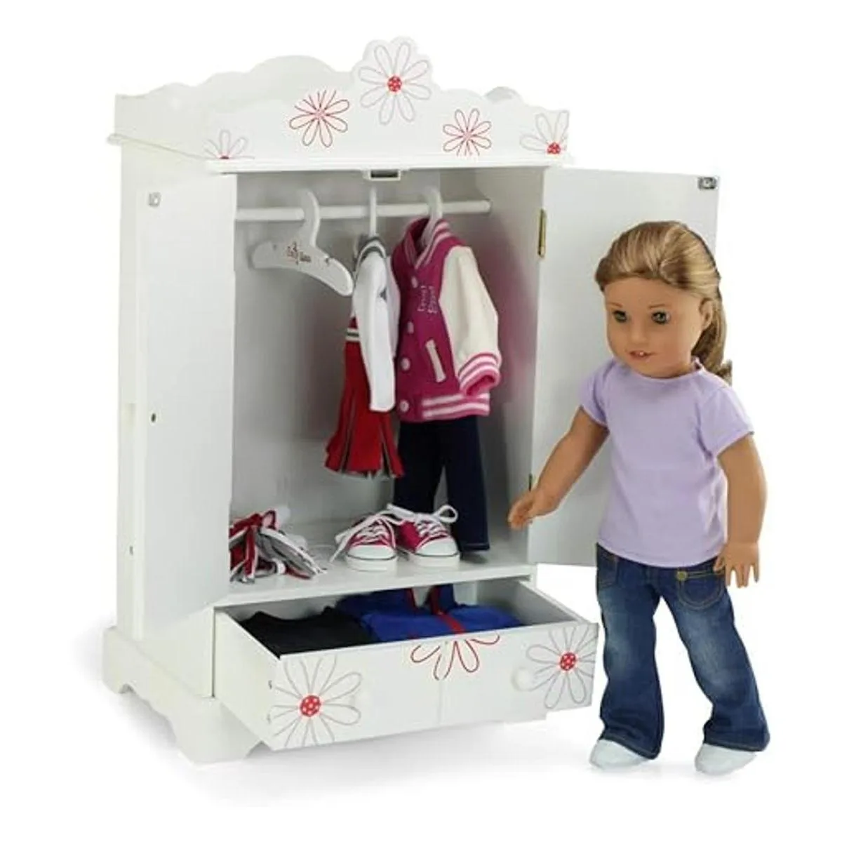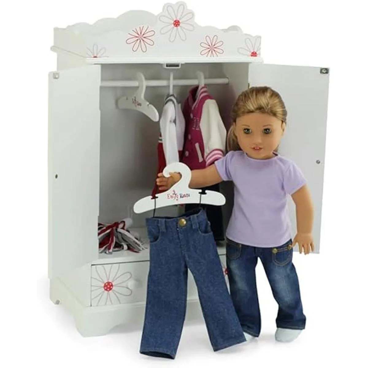 Armario grande de 18 pulgadas, se adapta a las muñecas American Girl de 18 pulgadas, diseño floral con perchas de madera incluidas