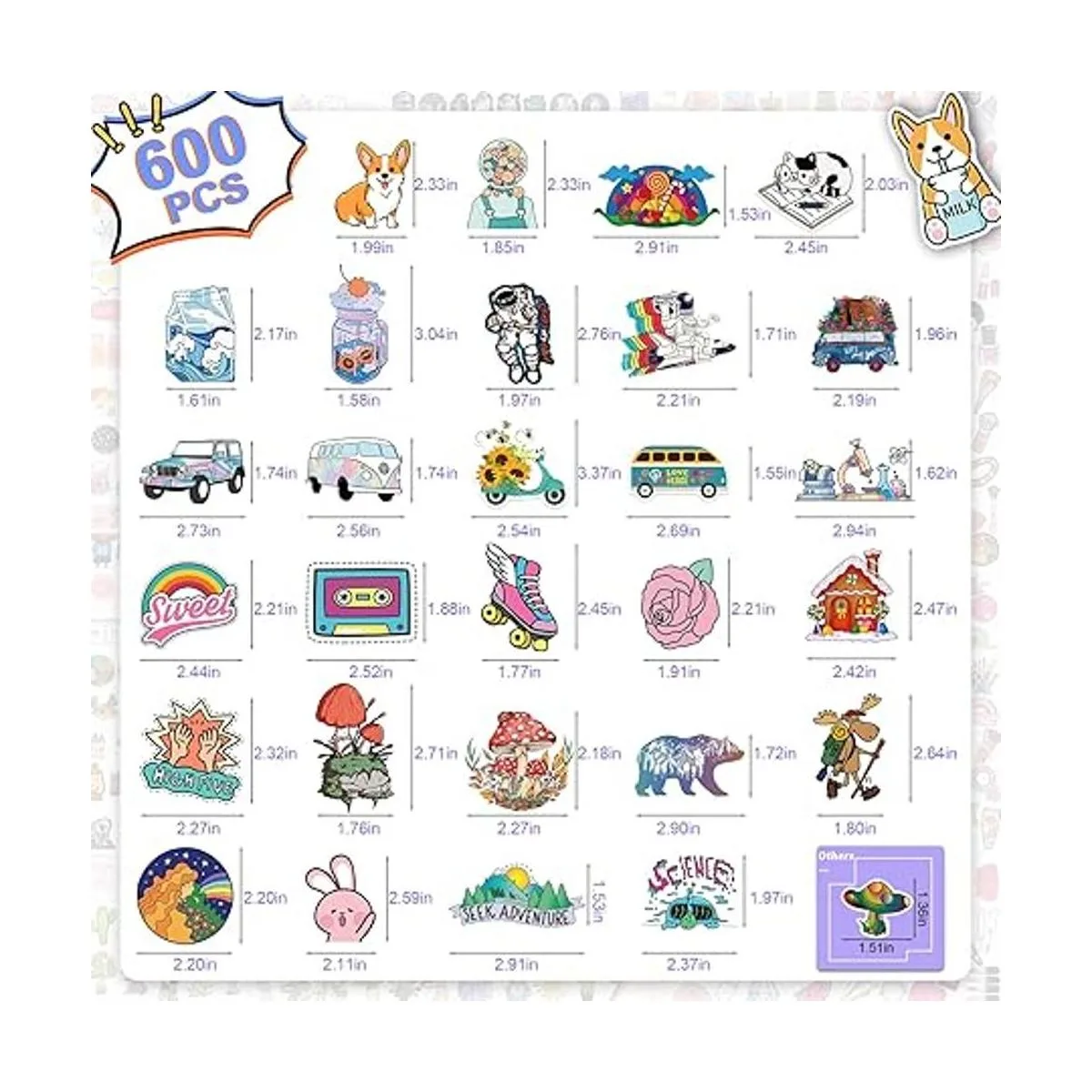 Lo que obtienes Hay 600 calcomanías de vinilo para botellas de agua, y el tamaño de la bonita calcomanía es de 2 a 4 pulgadas, las calcomanías para laptop son más grandes que las de las calcomanías normales. Puedes obtener las calcomanías que aparecen en las imágenes, con más opciones y mayor rendimiento de costo, y hacer tu vida colorida.