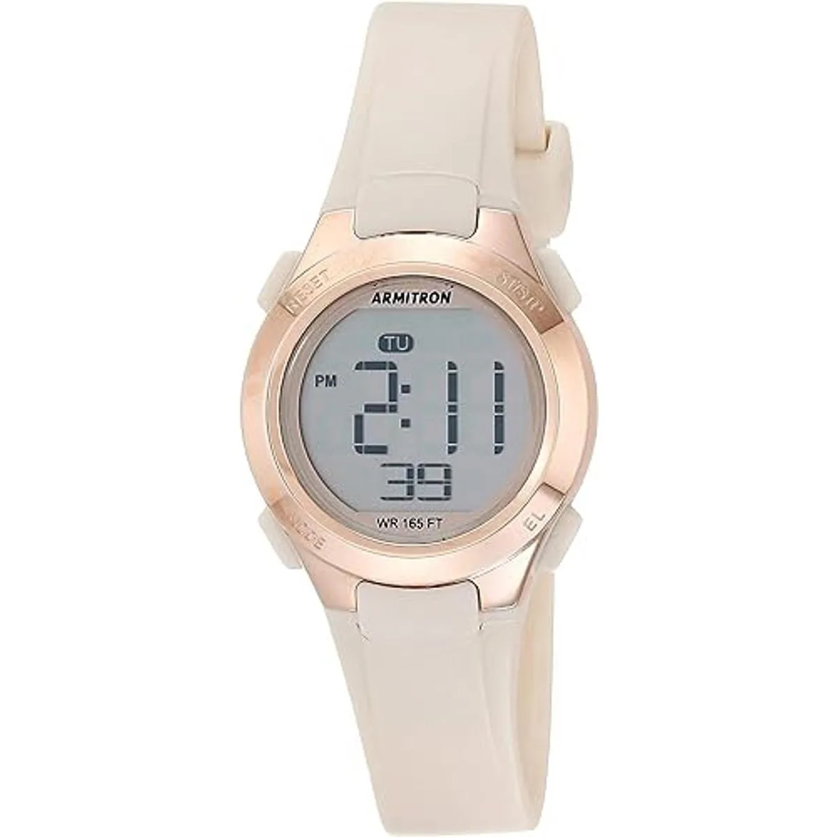 Armitron Sport Reloj con correa de resina rosa con cronógrafo digital para mujer, 457135PBH, color rosa rubororo rosa, Rosa pálidoBeigeOro rosa, Cronógrafo, digital