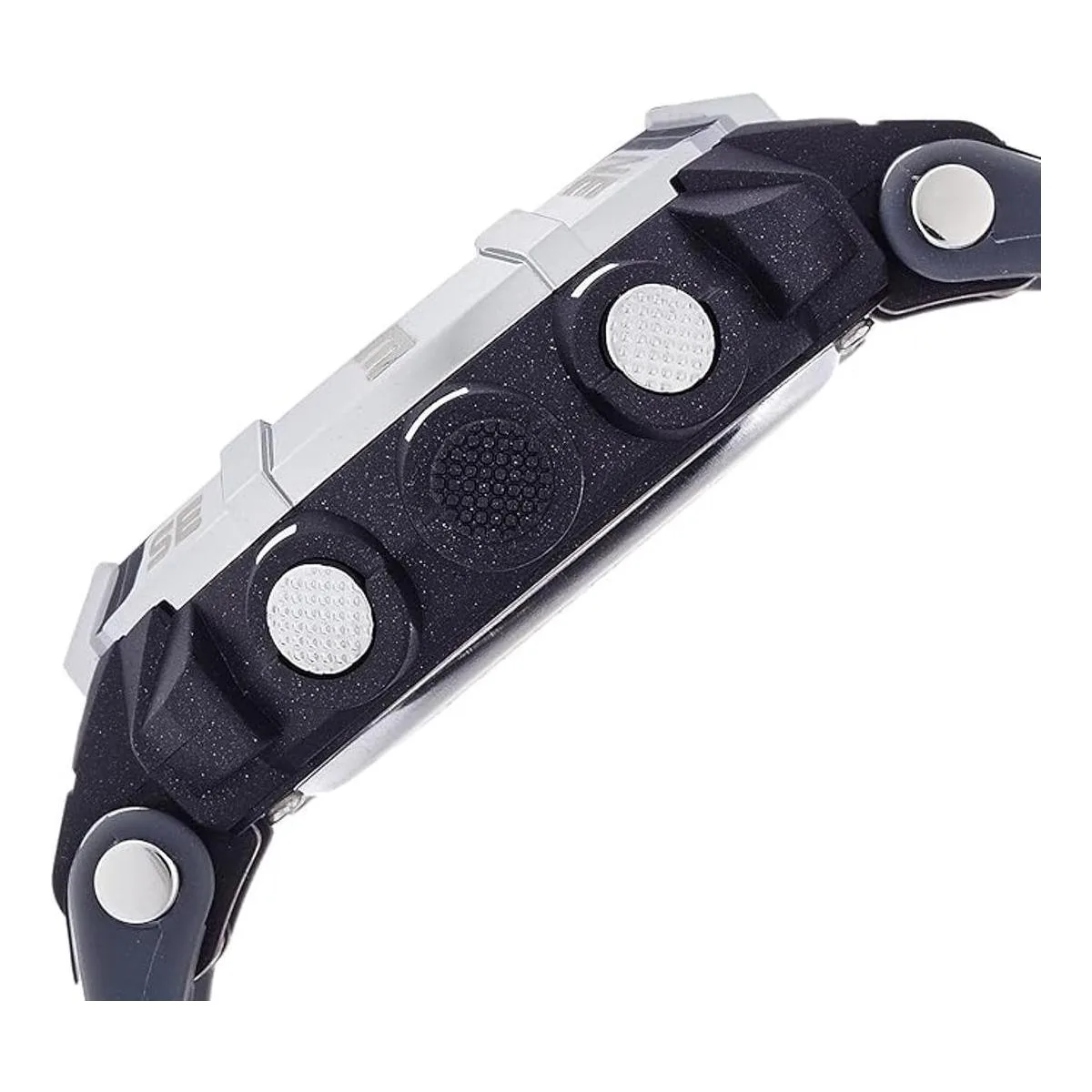 Reloj digital de dos tonos con múltiples pantallas de esfera, bisel inspirado en brújula y empujador texturizado