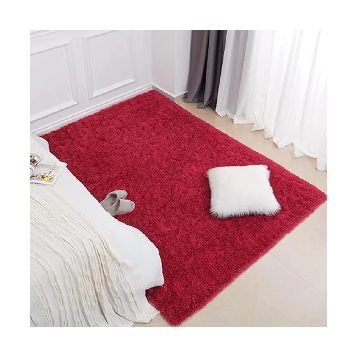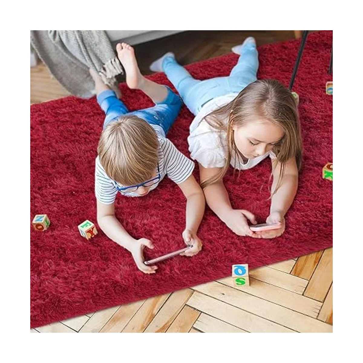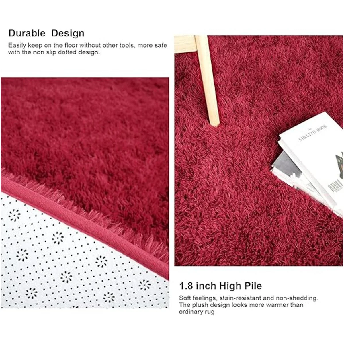 AROGAN Alfombras esponjosas para dormitorio, sala de estar, alfombras de área de pelo largo para habitación de niños y niñas, alfombra de pelo de felpa para sala de juegos, dormitorio, 3 x 5 pies, rojo vino