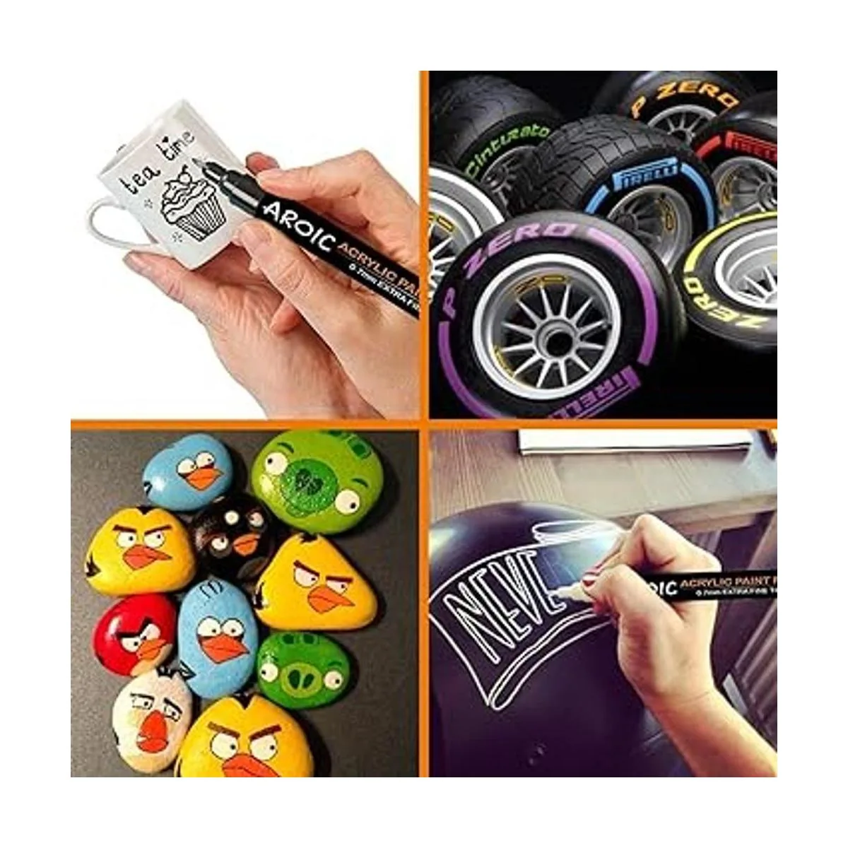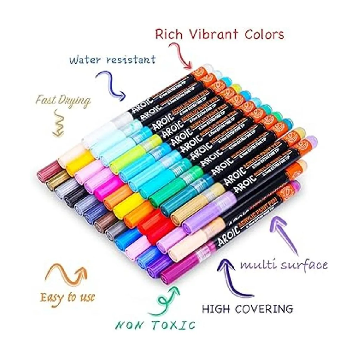 Amplio uso: los bolígrafos de pintura acrílica de AROIC se pueden utilizar para hacer ropa pintada a mano, zapatos pintados a mano, pinturas de pared, varios productos de proceso de bricolaje, proceso de álbumes de recortes y producción de tarjetas.