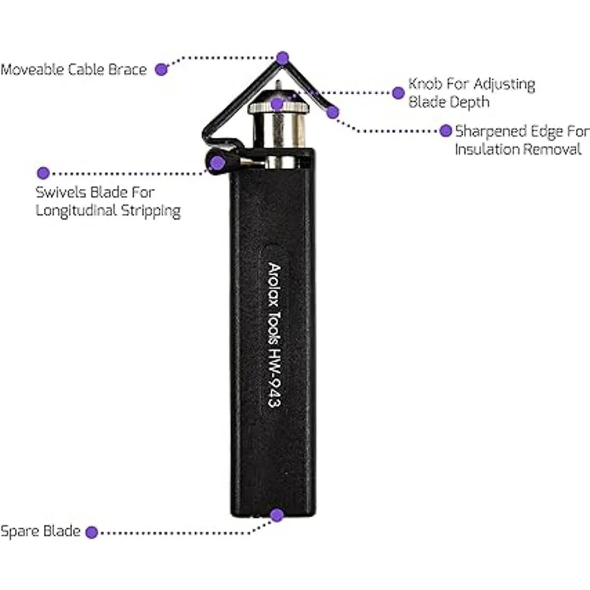 Arolax Pelacables redondos, con profundidad de corte ajustable, para pelacables circunferenciales, longitudinales y ventanas, de 316 a 1 pulgada de diámetro.