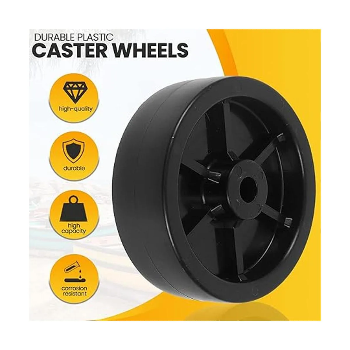 ARPRO Ruedas de remolque de barco de 6 pulgadas, ruedas giratorias de plástico negro de ajuste universal, incluye todos los accesorios de montaje, adecuadas para gatos de remolque de barco con 1 o 2 ruedas