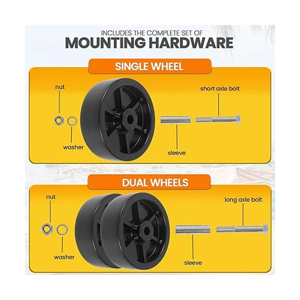 Adecuado para unidades que utilizan 1 o 2 ruedas: incluye accesorios para gatos de remolque de barco que solo requieren una rueda giratoria de 6 pulgadas y unidades que utilizan ruedas de doble rueda de 6 pulgadas