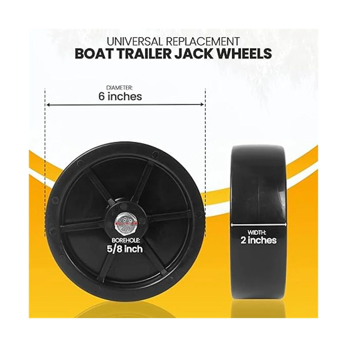 1 par de ruedas giratorias para gato de remolque de barco: este es un reemplazo universal para gatos de remolque de barco. Las dimensiones de la rueda son de 5 5/8 de diámetro 6 pulgadas de diámetro nominal de 6 pulgadas, 2 pulgadas de ancho y un agujero de 5/8