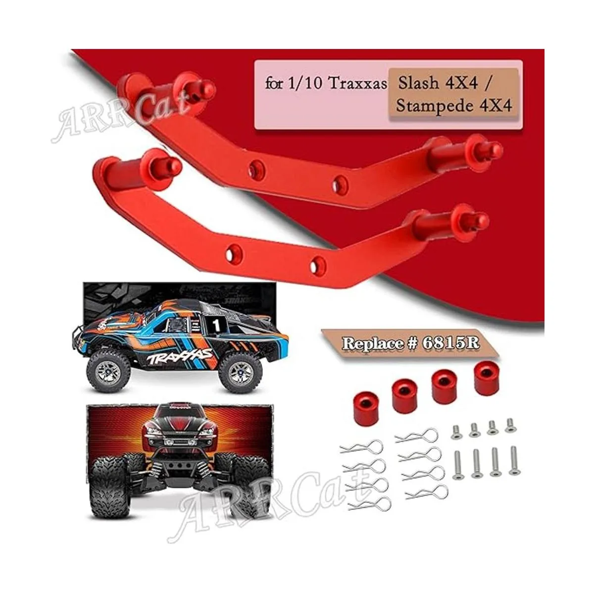 ARRCat Extensiones de poste de carrocería, juego de postes de montaje frontal y trasero de aluminio para 110 Traxxas Slash 4X4Traxxas Stampede 4X4, RC Hops Up actualiza piezas para StampedeSlash 4X4 VXL, rojo, reemplaza 6815R