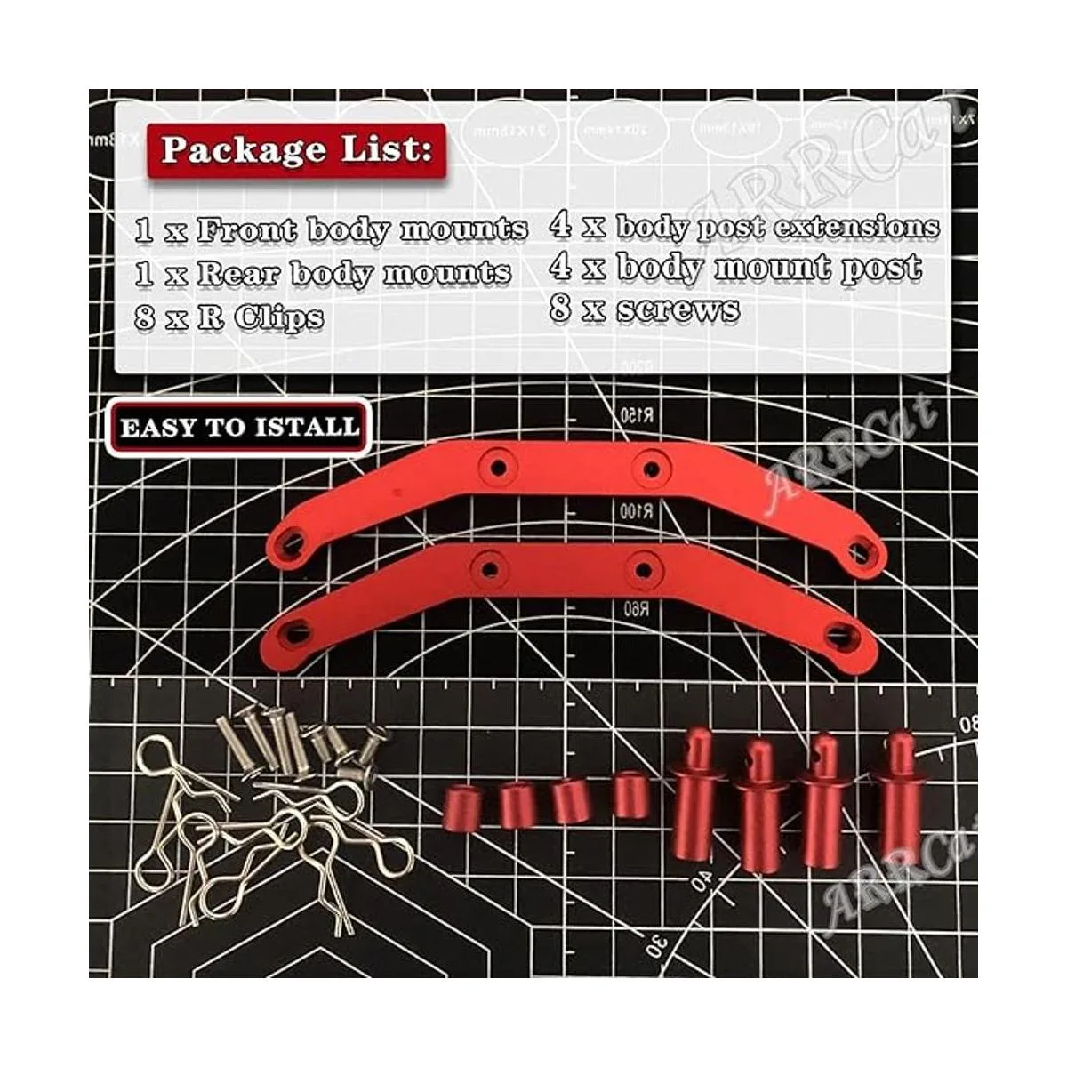 Lista del paquete : 1 soporte de carrocería frontal, 1 soporte trasero para el cuerpo, también viene con herramientas para una fácil instalación.