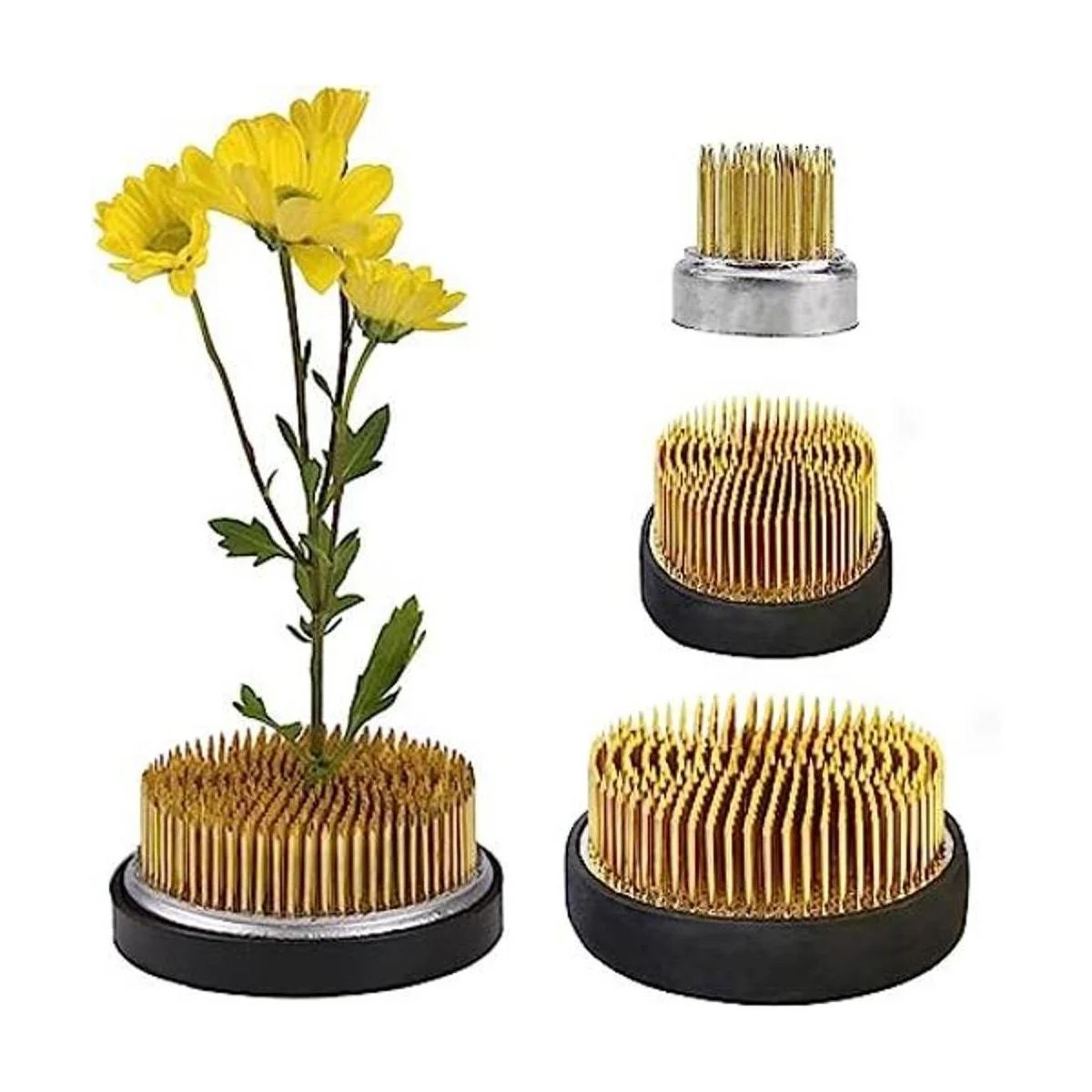 Arreglos florales redondos, 3 piezas de rana, herramientas fijas japonesas, soporte floral para arreglos florales, fijación y decoración dorado, 0.91 pulgadas, 1.02 pulgadas, 2.36 pulgadas