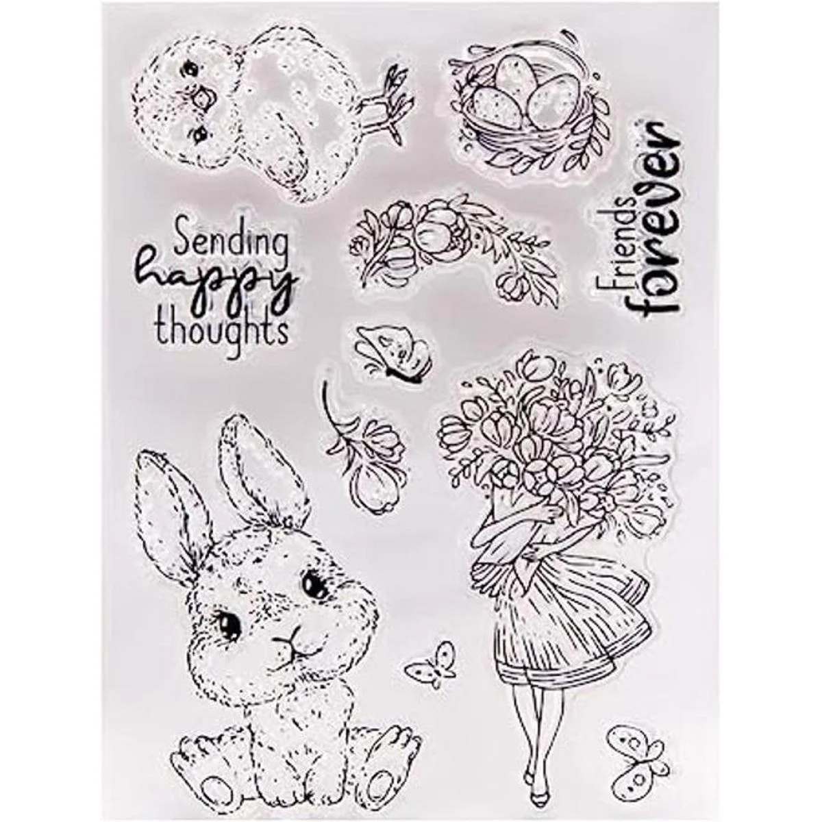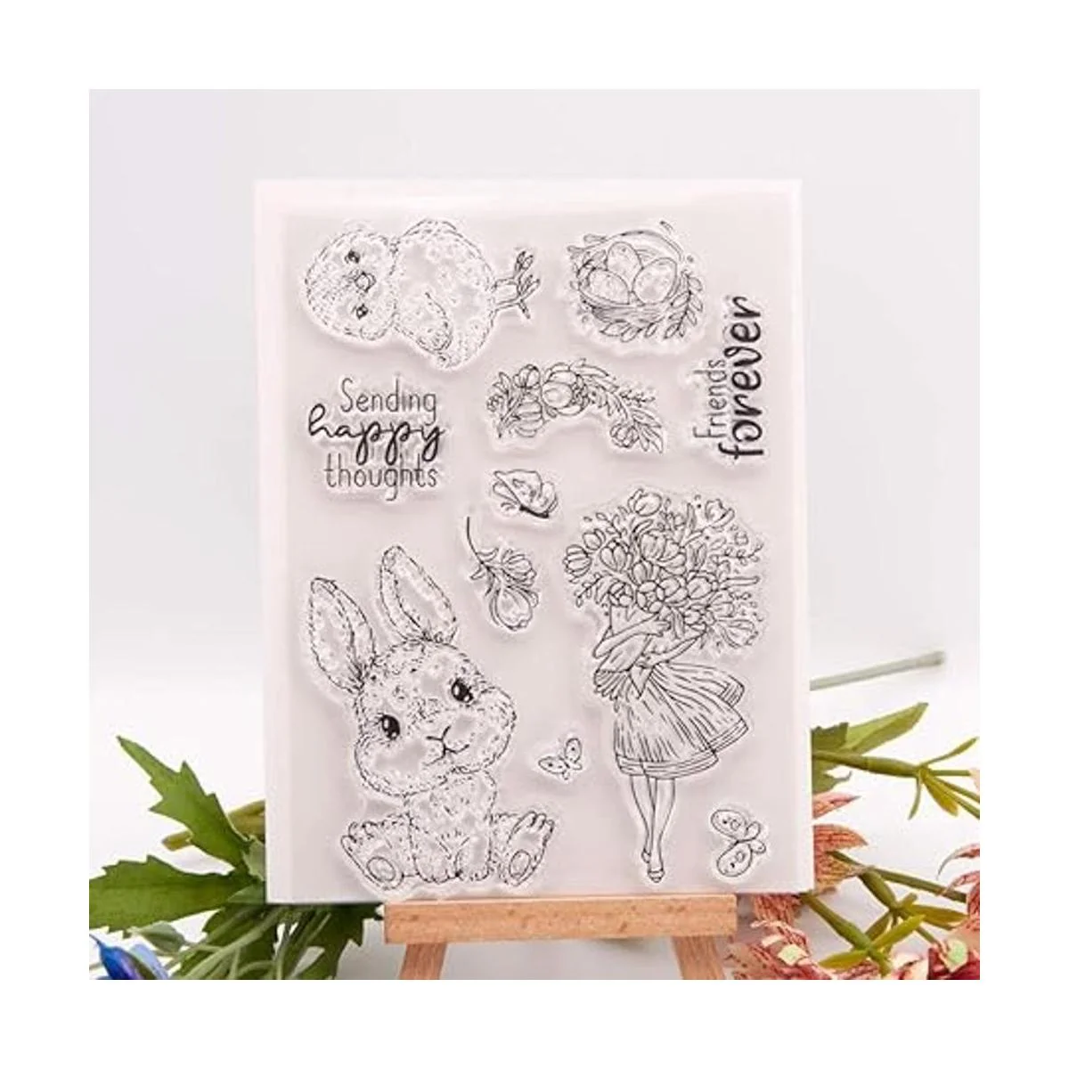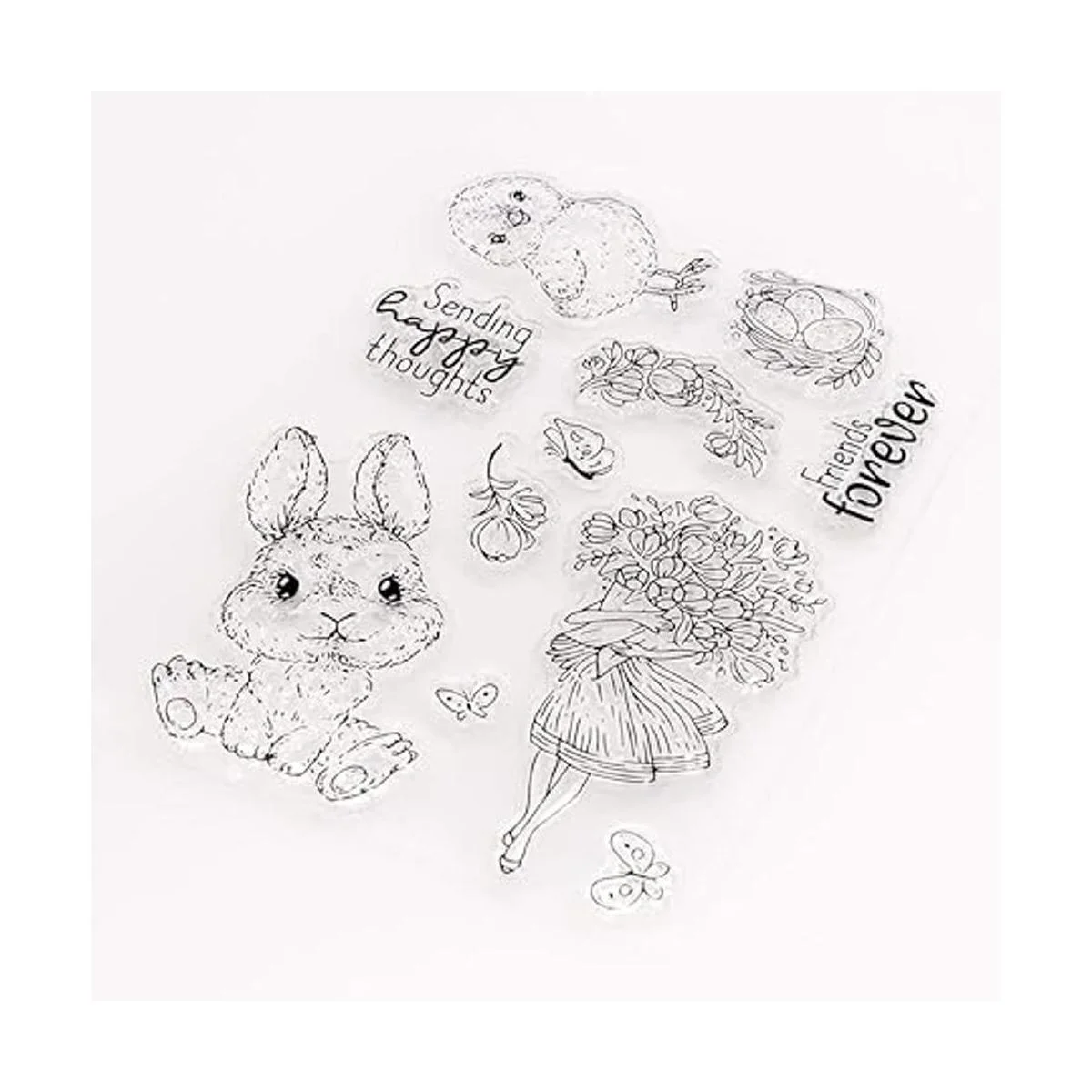 Arrietty Happy Easter Huevo Conejito Flores de Pollo Mariposa Envío Felices Pensamientos Claro Sellos para la Decoración de Tarjetas y DIY Scrapbooking Herramientas Sellos de Goma