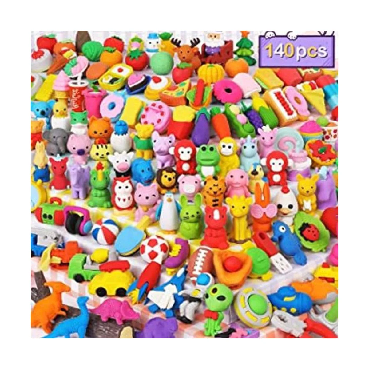 VALUE PACK ENDLESS FUN Updated 140PCS huge mini erasers, designed with animal fruits vegetable dessert ball transportation dinosaur astronaut alien appearance, no duplicate and more variety. Whether for decoration, collection, play or as school supplies, animal erasers will bring infinite happiness to your sweeties