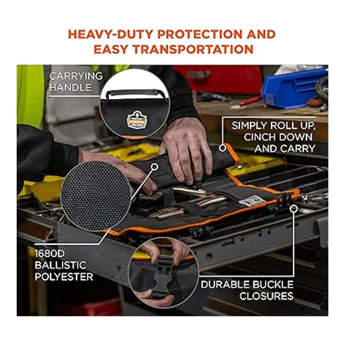 DURABLE Made with heavyduty 1680D ballistic polyester material with durable water repellent to protect tools