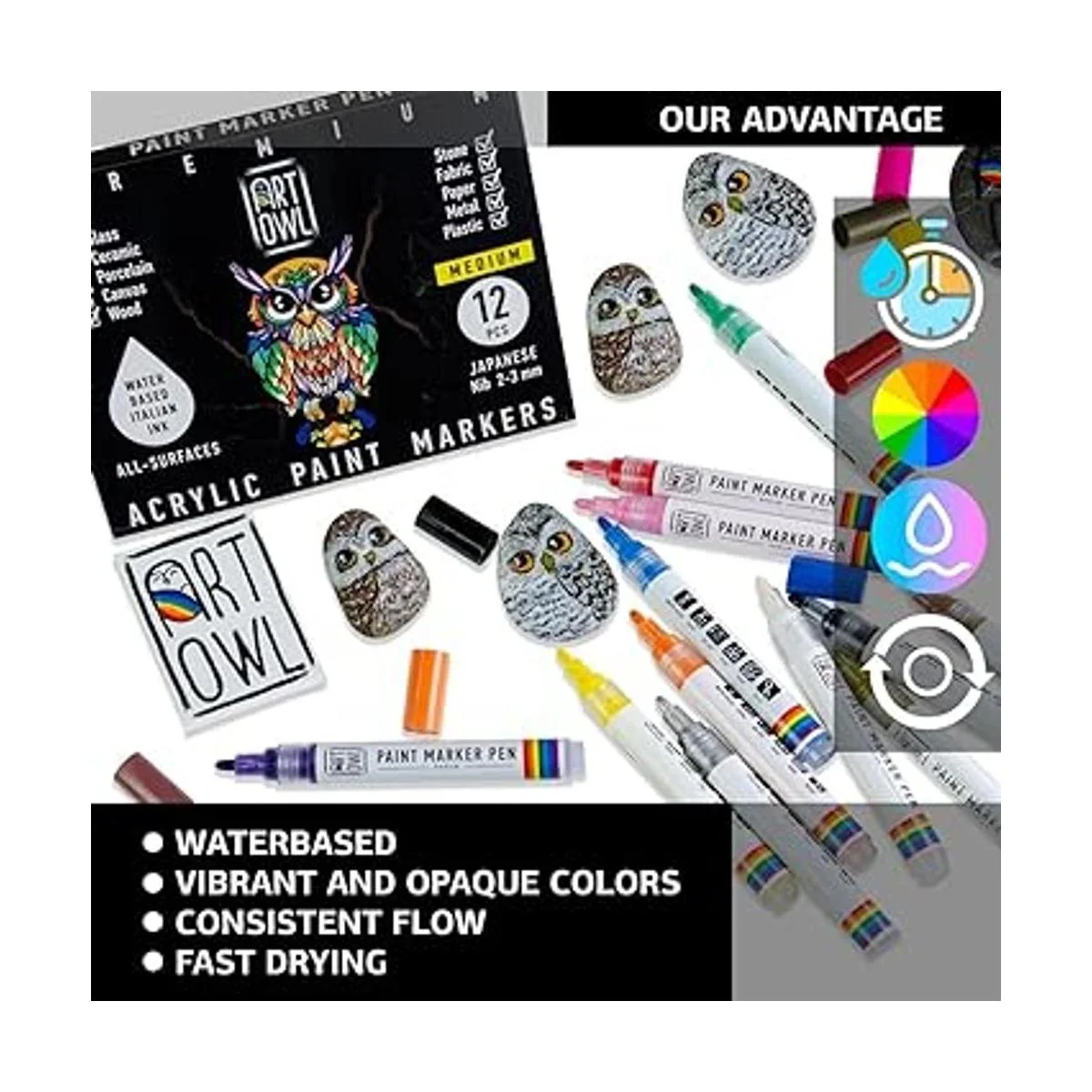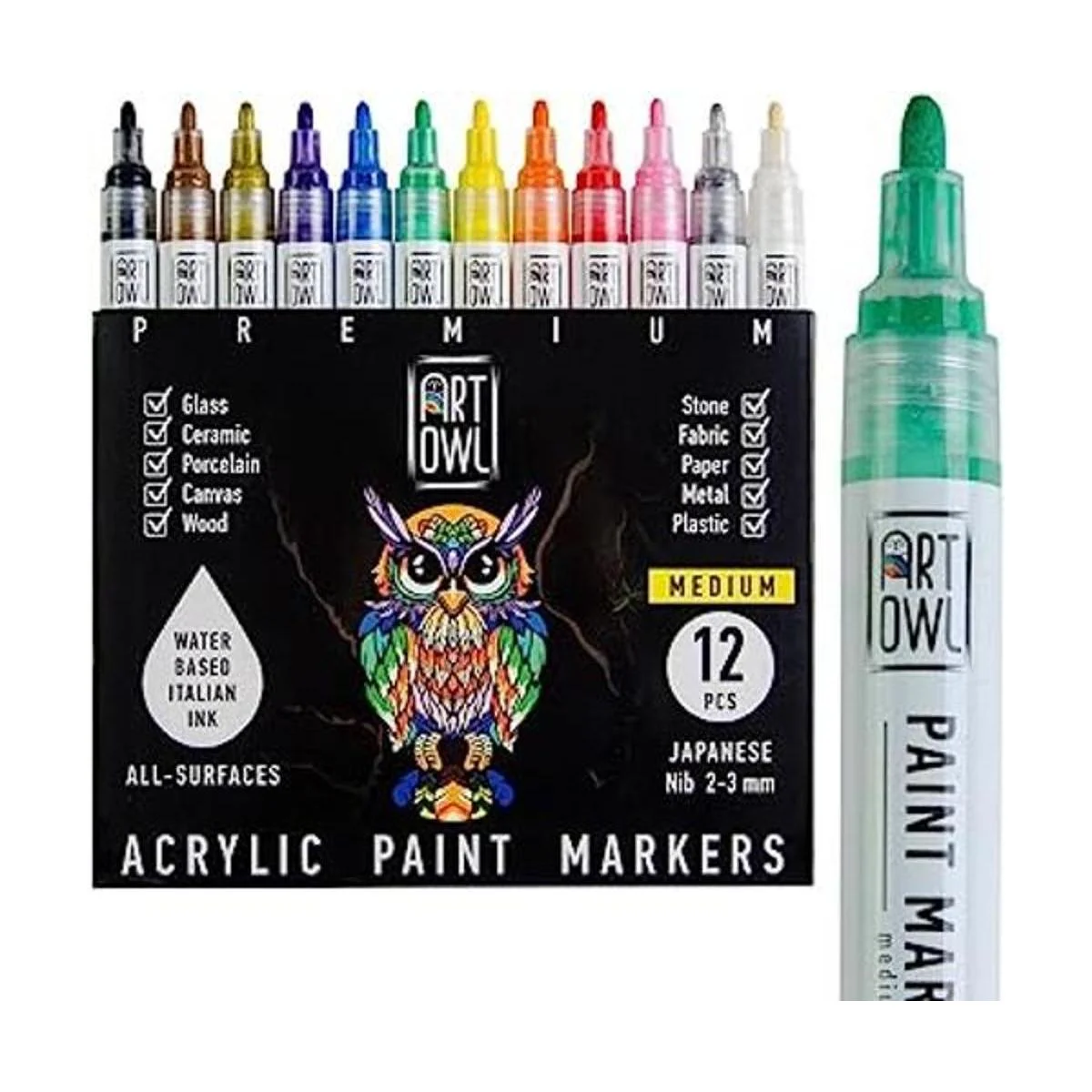 Juego de 12 rotuladores acrílicos de punta media de 2 a 0.118 in para dibujar en grandes áreas.
