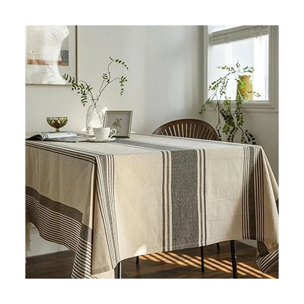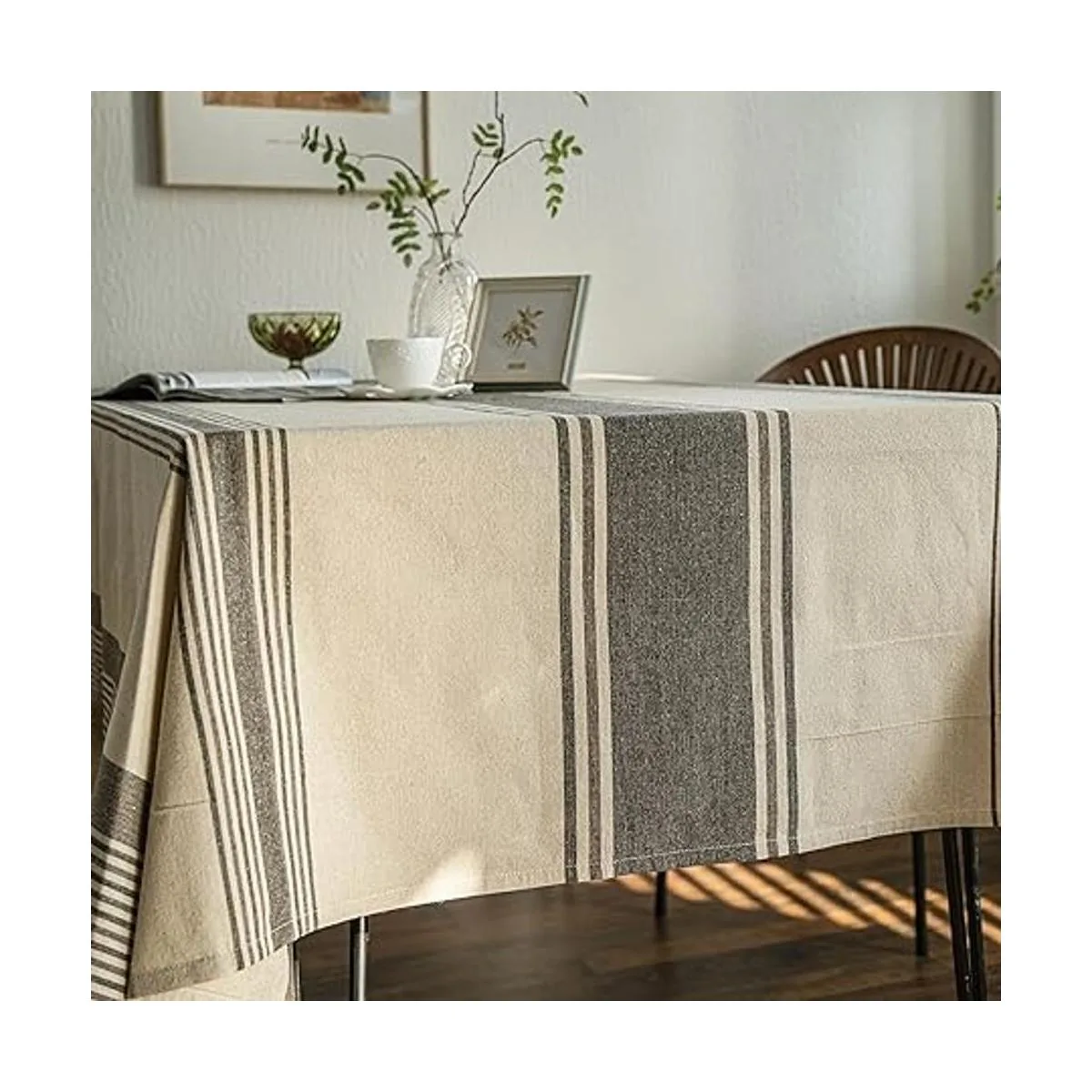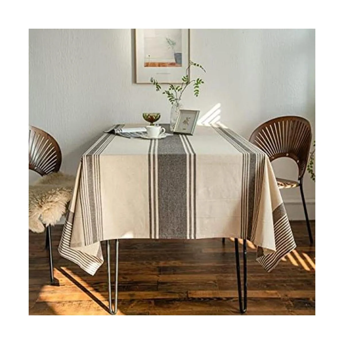 ArtBud Mantel de lino de algodón de arpillera marrón, mantel de granja a rayas, mantel de tela pesada, decoración de café y cocina, rectangular, 55 x 86 pulgadas 68 asientos