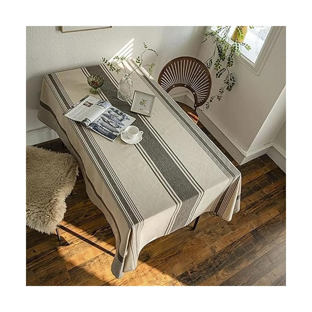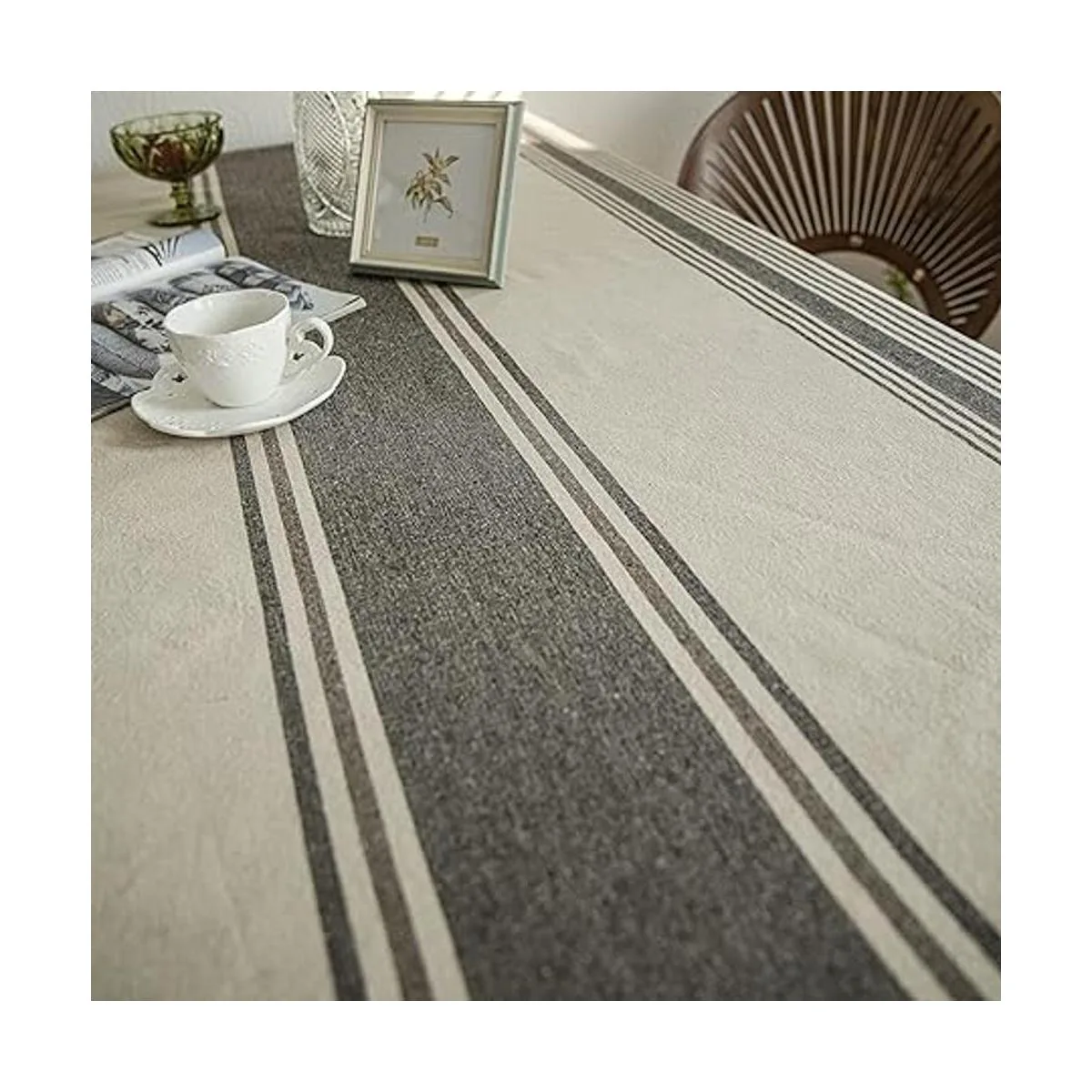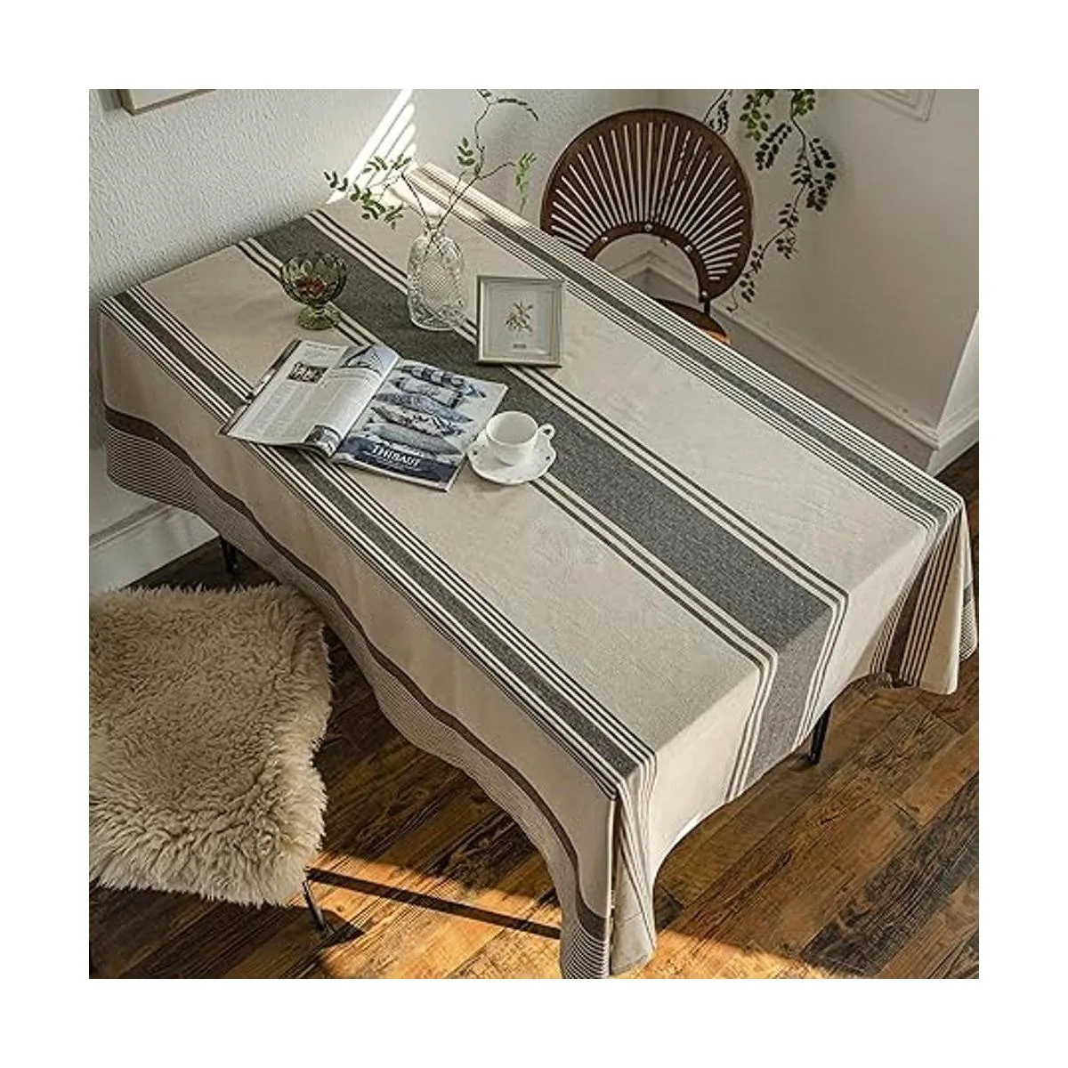 ArtBud Mantel de lino de algodón de arpillera marrón, mantel de granja a rayas, mantel de tela pesada, decoración de café y cocina, rectangular, 55 x 86 pulgadas 68 asientos