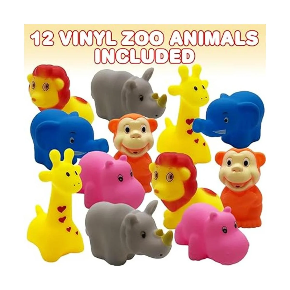 ArtCreativity Animales de vinilo para zoológico, paquete de 12 juguetes surtidos, recuerdos de fiesta de cumpleaños de safari para niños, divertidos juguetes de bañera y piscina para niños, ayudas de aprendizaje educativas para niños y niñas