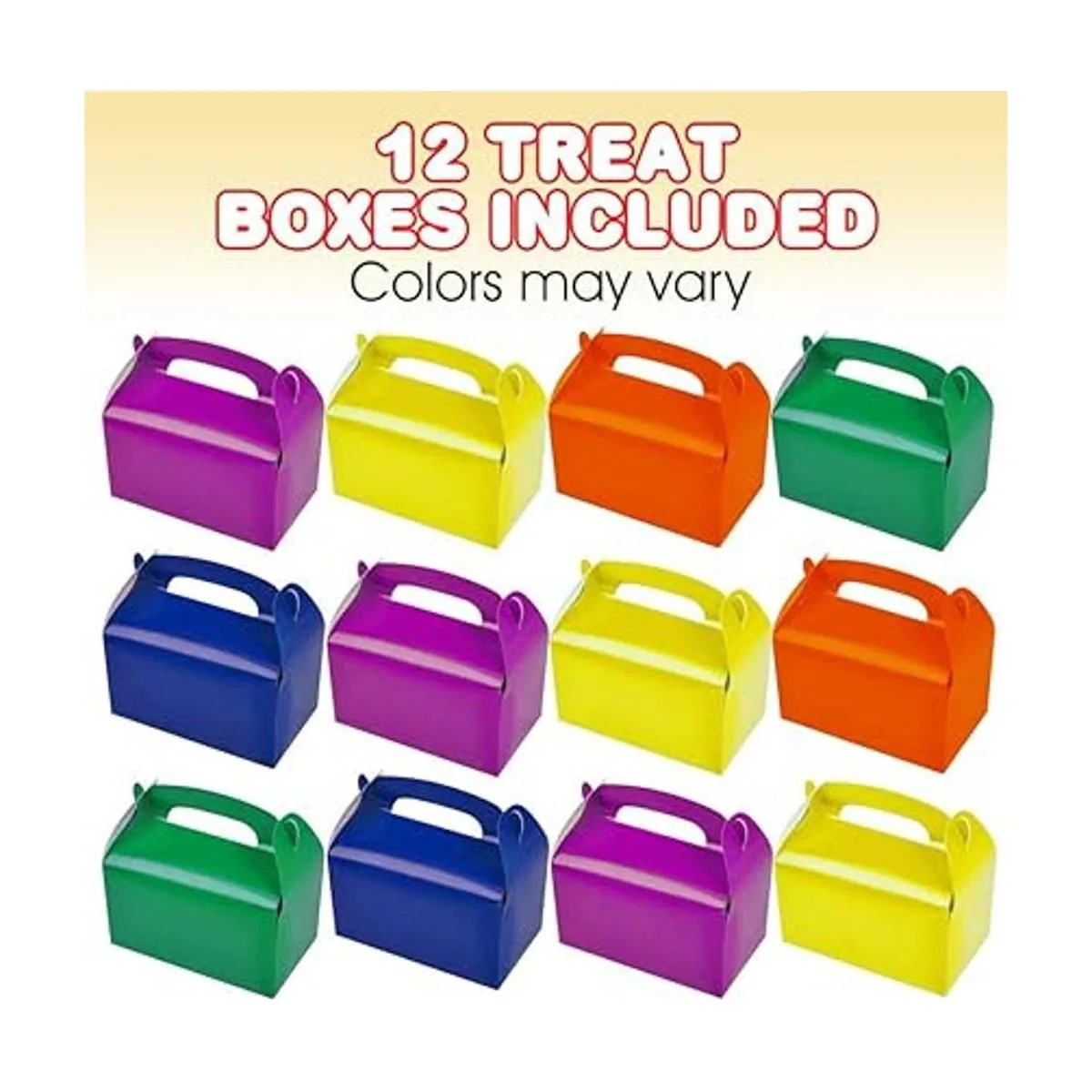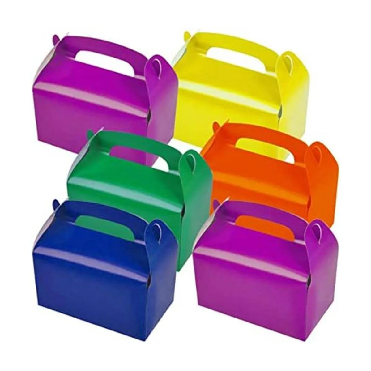 ArtCreativity Cajas de dulces de colores brillantes para caramelos, galletas y recuerdos de fiesta, paquete de 12 cajas de galletas, cajas de cartón con asas para caramelos de boda, regalos de cumpleaños, artículos de vacaciones