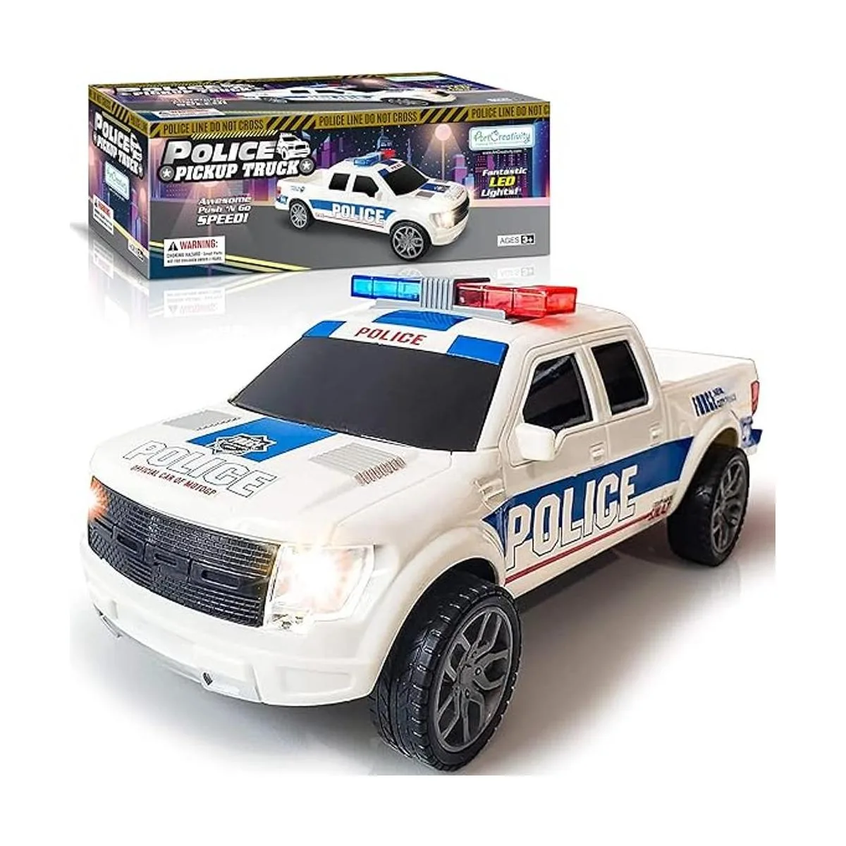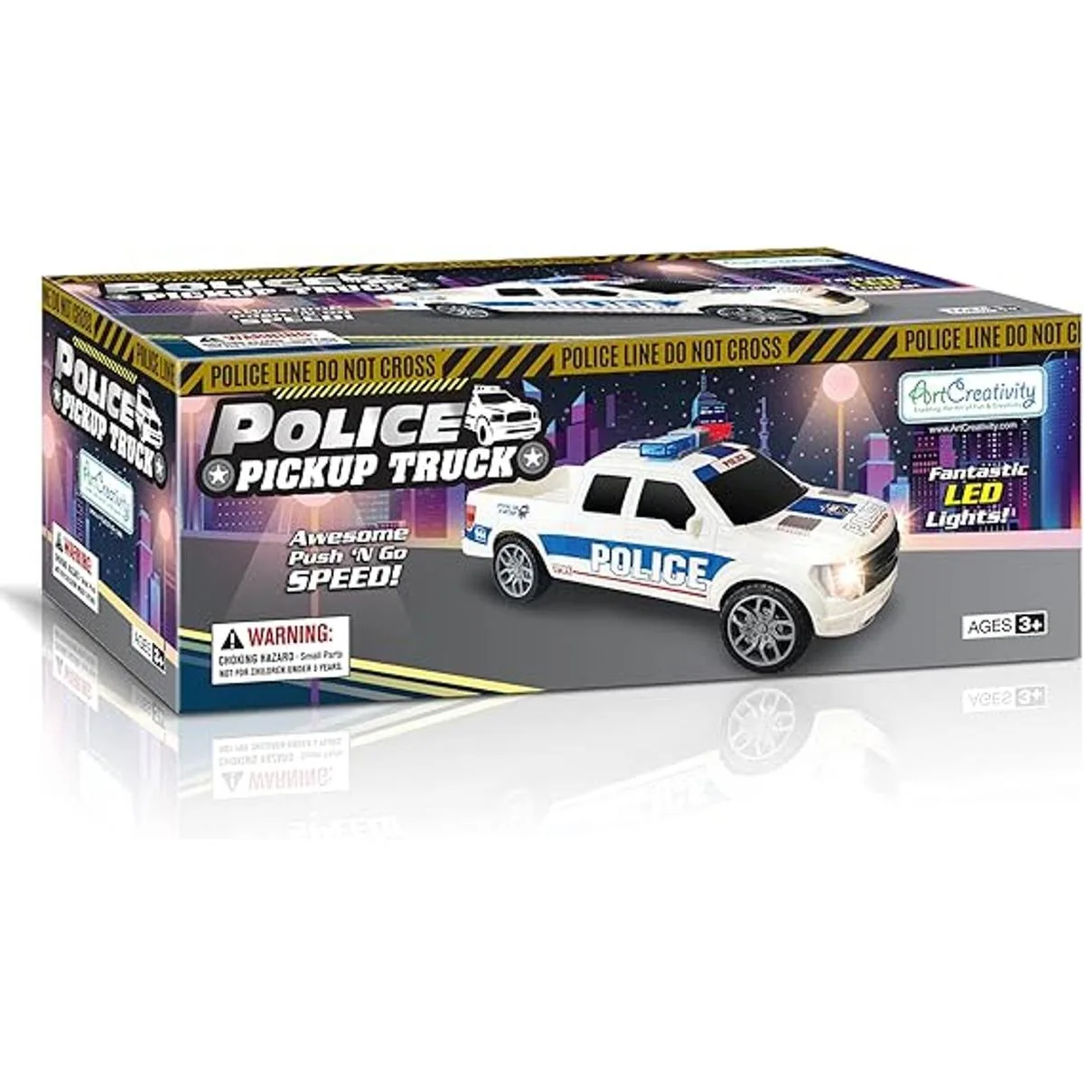 ArtCreativity Camioneta de policía con faros LED y sirenas, juguete de coche de policía iluminado Push and Go; camiones monstruos de policía, camiones de juguete para niños, niños pequeños, coches de juguete para niños de 2 años