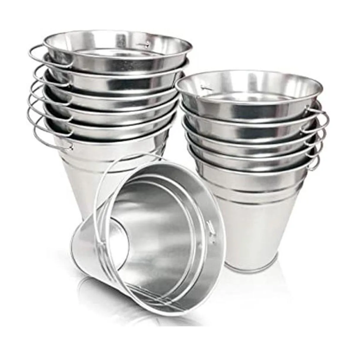 Hermosos cubos: haz que esa fiesta destaque o añade versatilidad a tu hogar con este juego Incluye 12 cubos de metal grandes con asas, cada uno de 5 pulgadas de altura y 4.5 pulgadas de diámetro. Te encantará el aspecto vintage que se asemeja a los cubos metálicos galvanizados de lo antiguo.