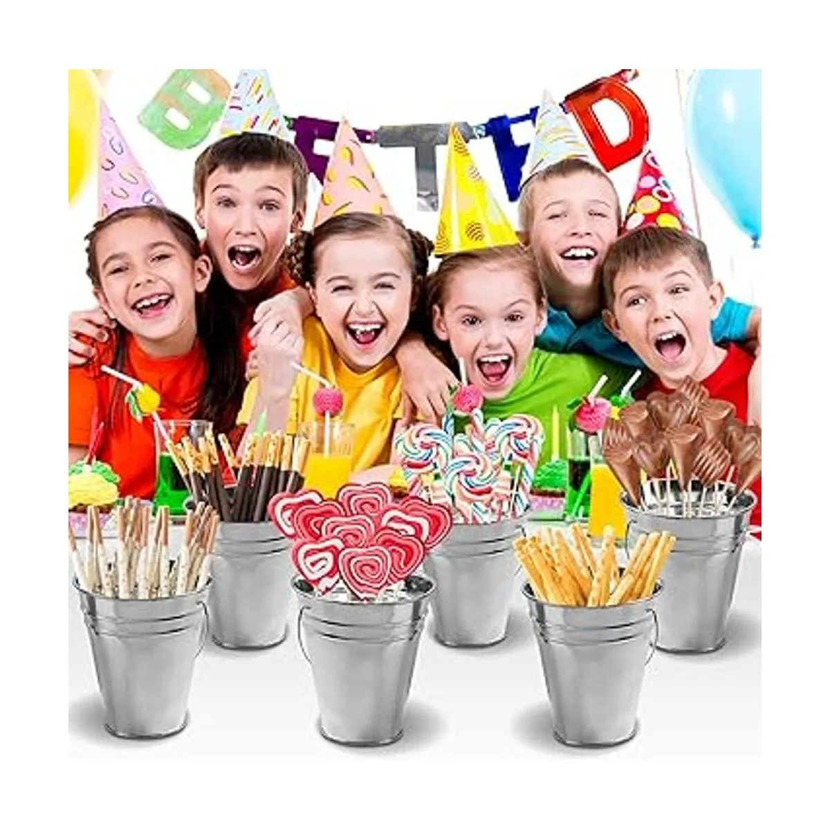 Recuerdos de fiesta: Buscas los recipientes perfectos para preparar deliciosas galletas de cumpleaños y dulces Hazlo con estilo con los cubos grandes de metal galvanizado ArtCreativity Bonitos, resistentes y francamente encantadores, te dan suficiente espacio para empacar todas tus golosinas cuidadosamente hechas.