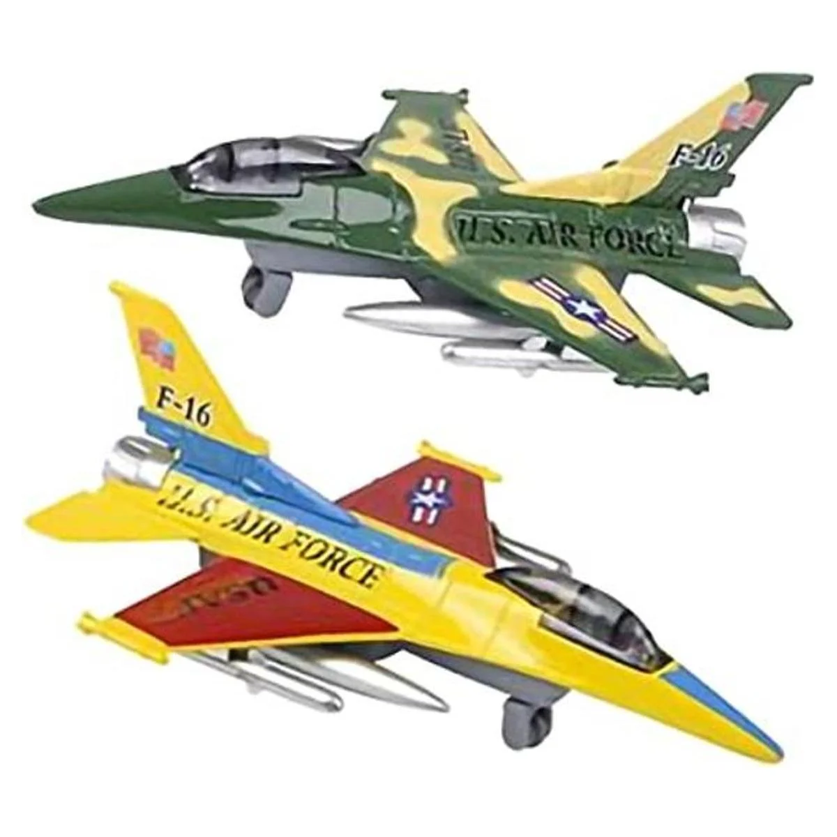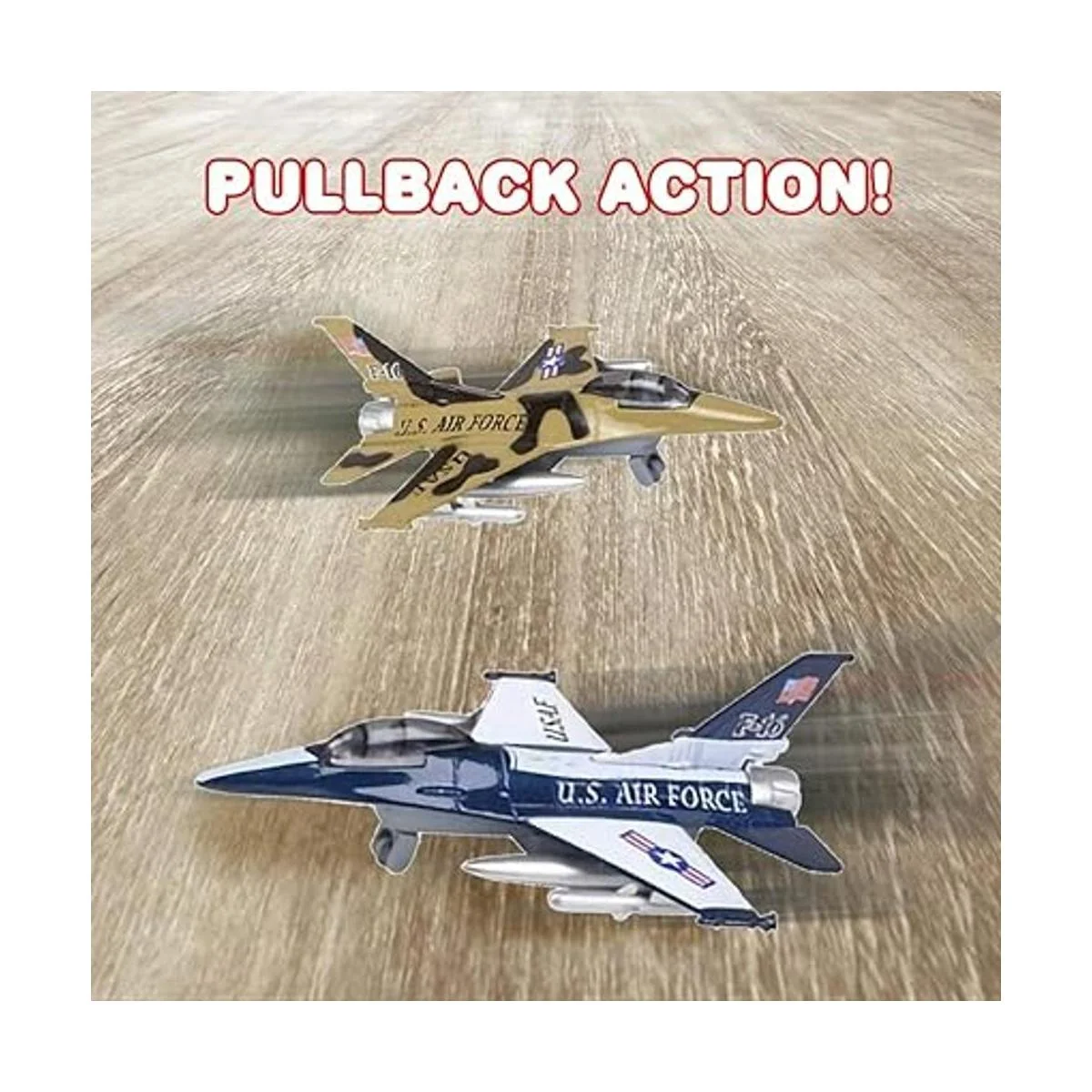 ArtCreativity Diecast F16 Jets con mecanismo de retroceso, juego de 2, juguetes de combate de avión de metal fundido a presión para niños, decoraciones de pasteles militares de la Fuerza Aérea, recuerdos de fiesta de aviación, rellenos de bolsas de golosinas