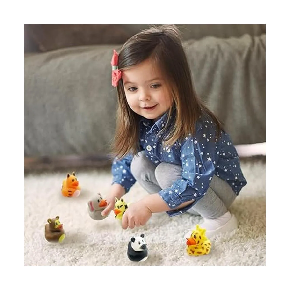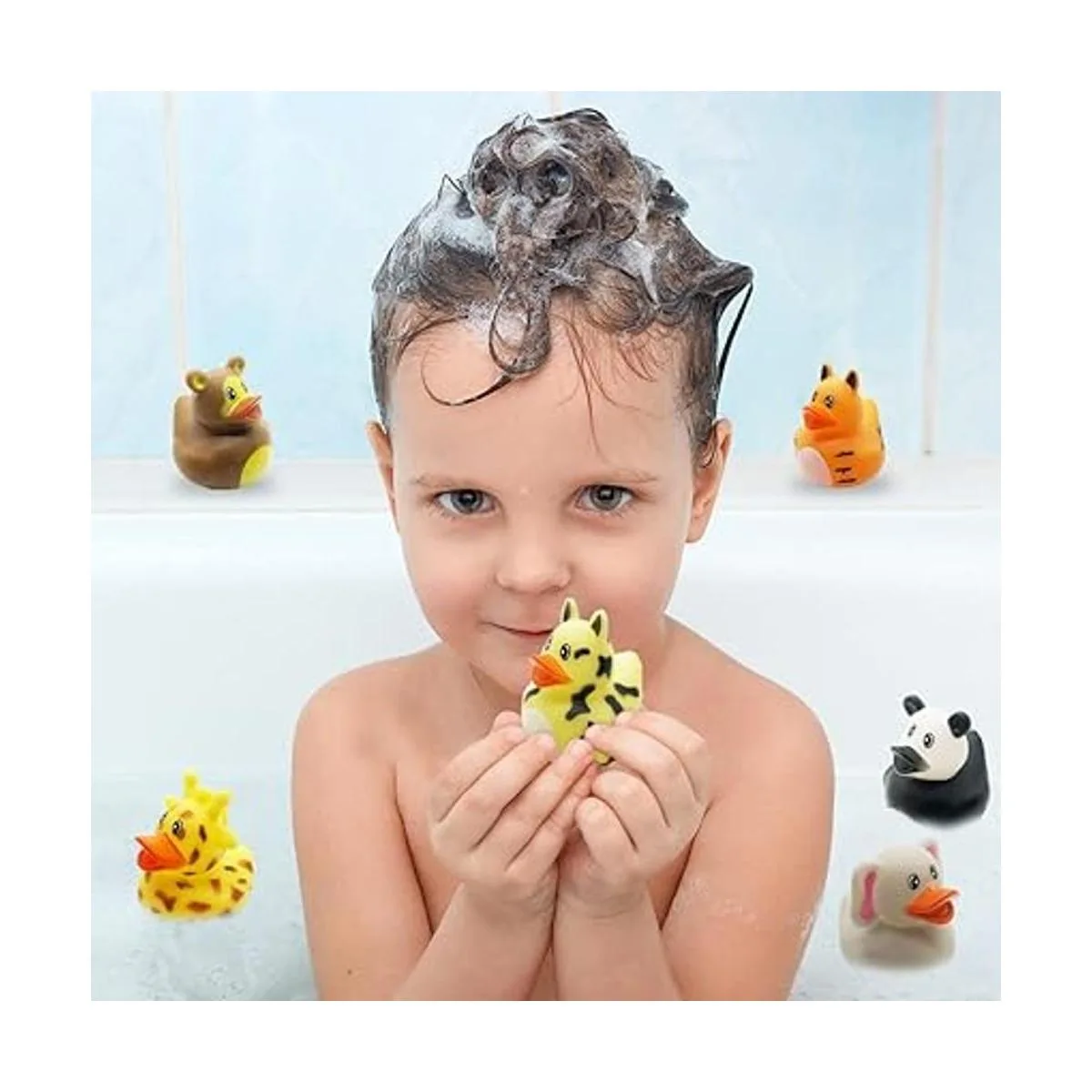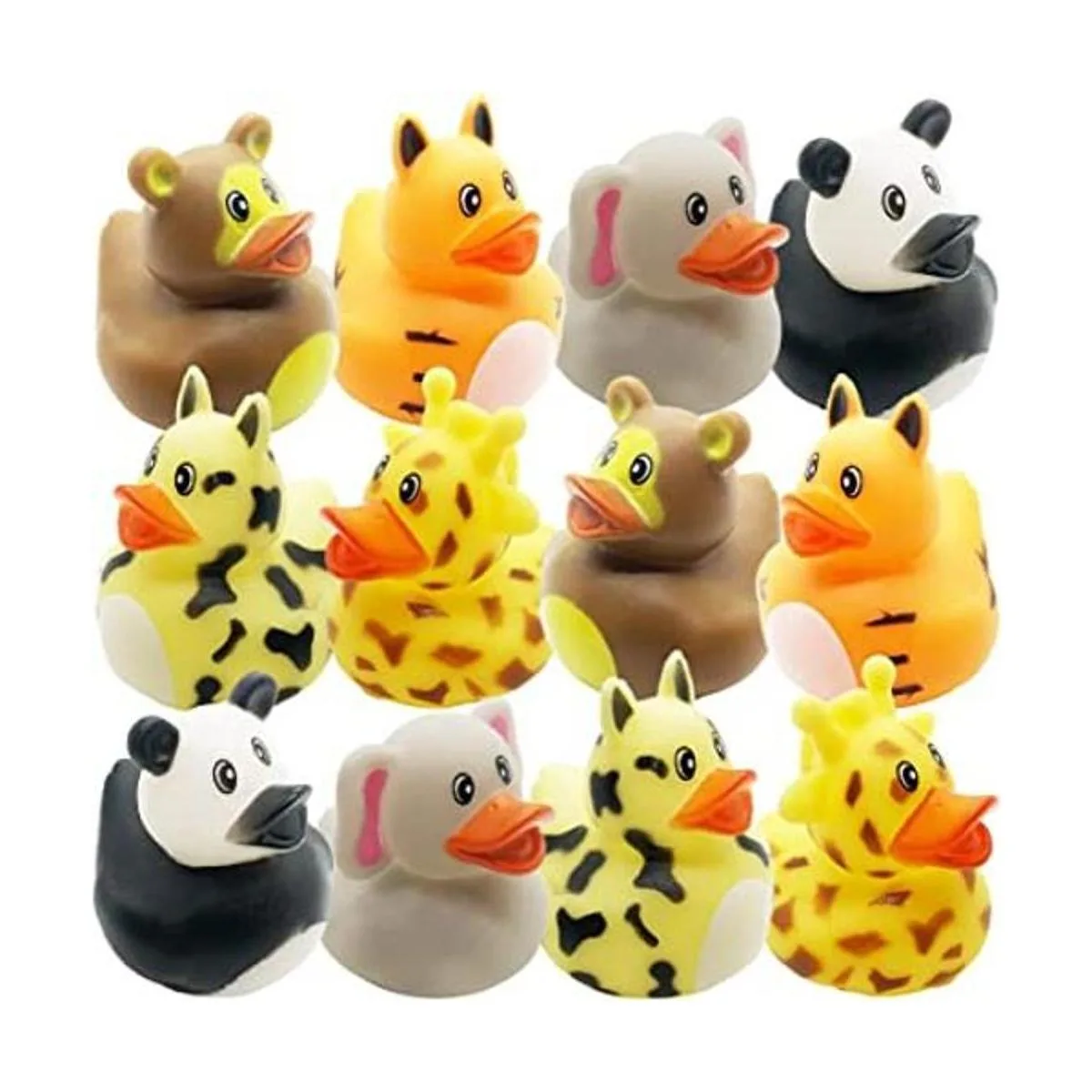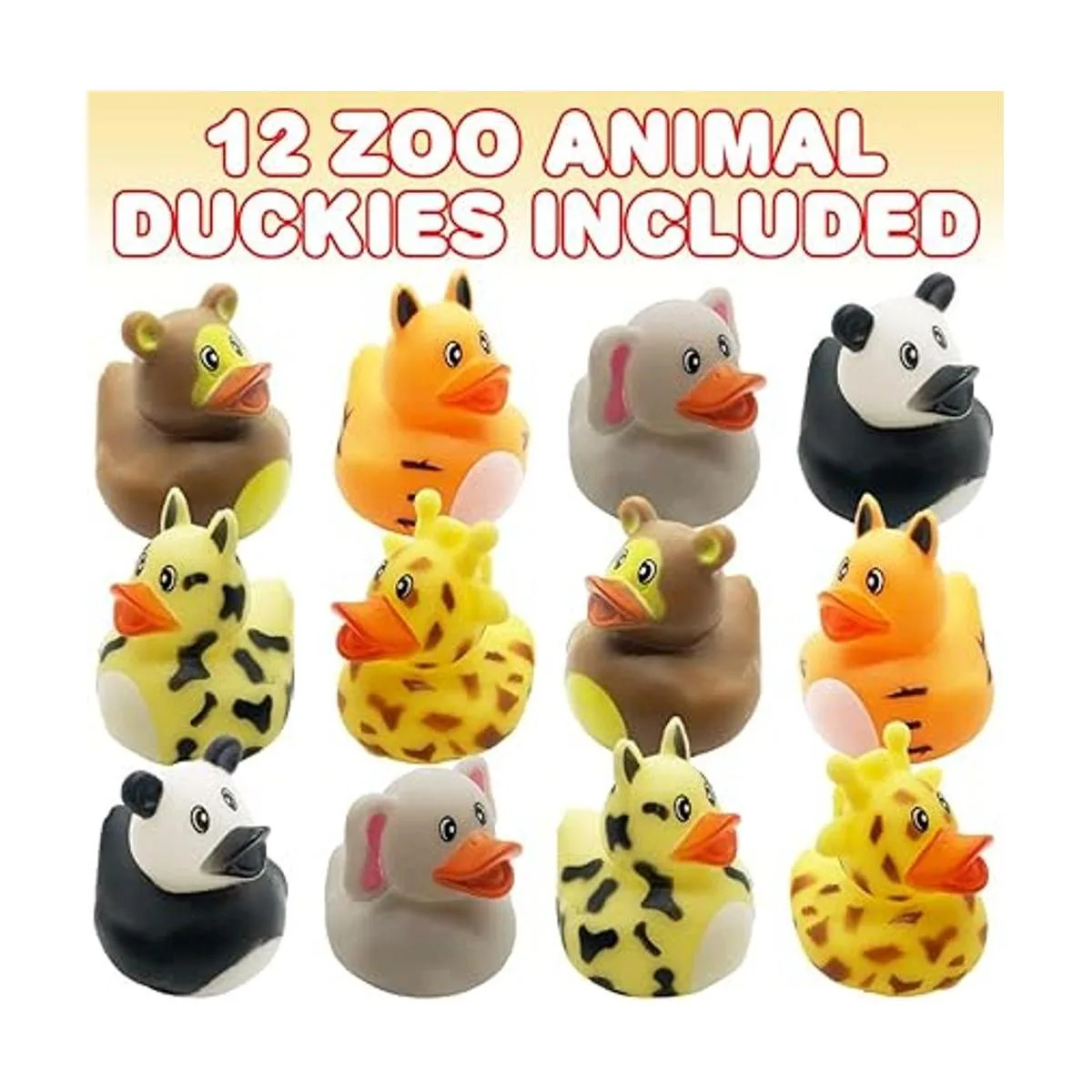 ArtCreativity Duckies de goma de animales del zoológico para niños, paquete de 12, juguetes de bañera de pato con temática de zoológico, divertidos suministros de fiesta de carnaval y safari, recuerdos de fiesta de cumpleaños para niños y niñas