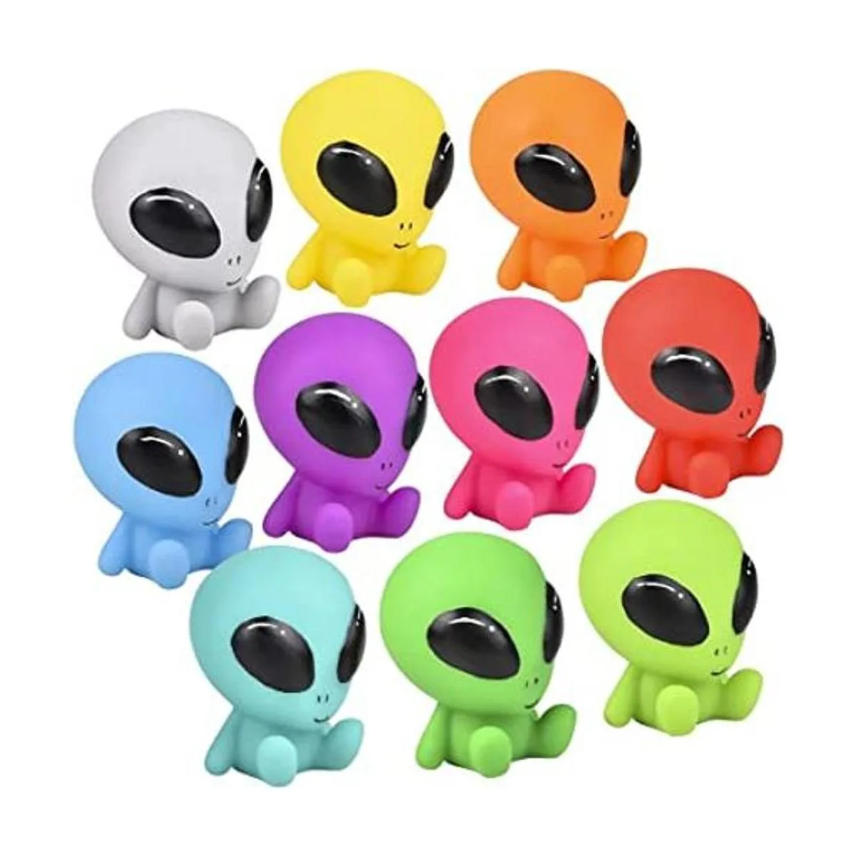 Diseño moderno: los bonitos alienígenas galácticas de goma están hechos de material resistente al agua que los hace lo suficientemente duraderos como para manejar toda la diversión salpicada. Miden 2.5 pulgadas y vienen en verde, azul, rojo, rosa, morado, amarillo, naranja y gris para una variedad vibrante.