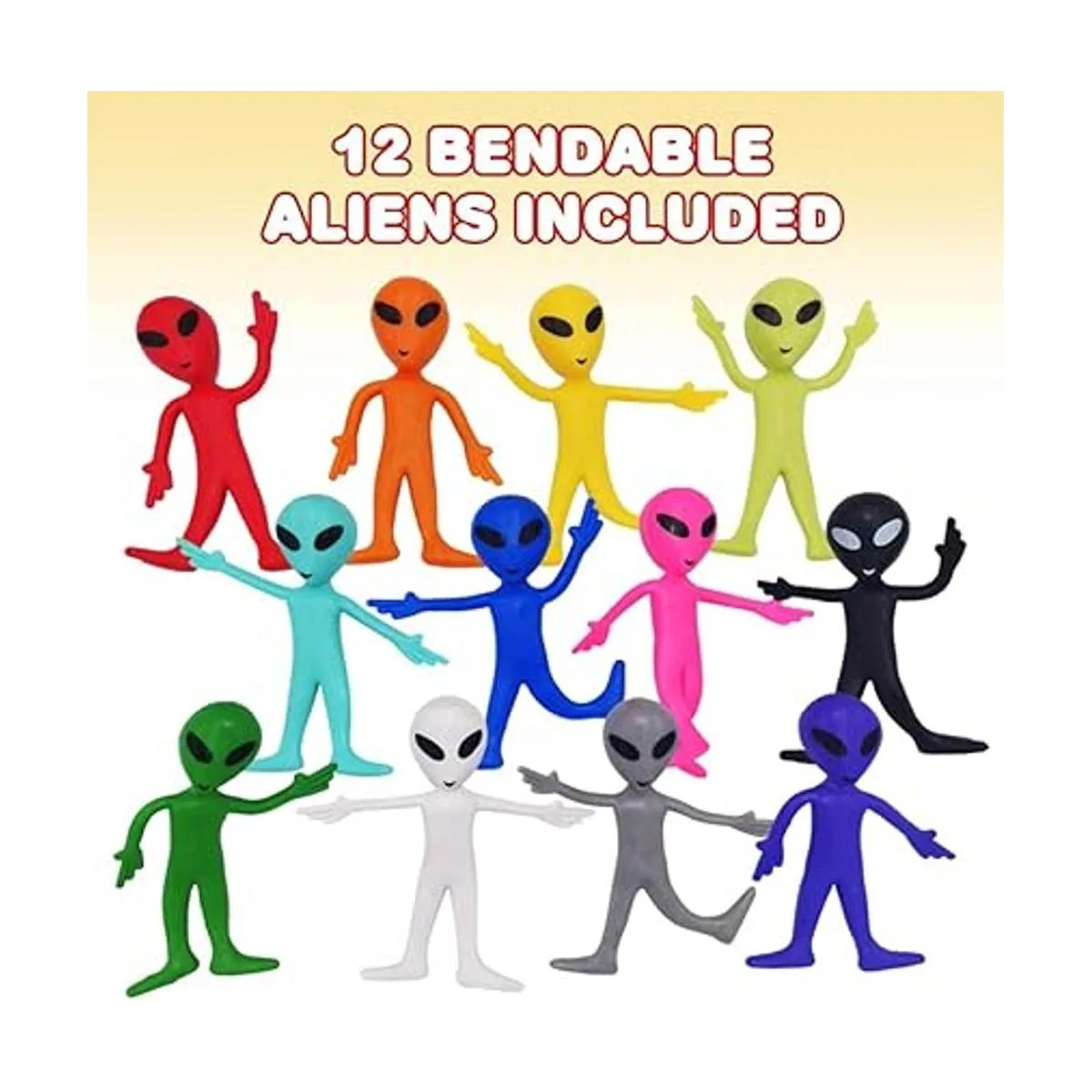 ArtCreativity Figuras alienígenas flexibles, juego de 12, juguetes alienígenas flexibles para niños, recuerdos de fiesta alienígena para niños y niñas, juguetes antiestrés para aliviar el estrés para niños, rellenos de bolsas de golosinas y rellenos de piñata